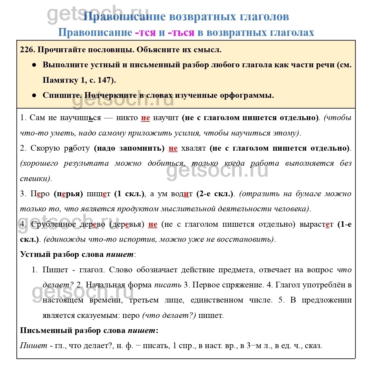 Рассмотрим ответы на Упражнение 226 из учебника по русскому языку для 4 класса Канакиной