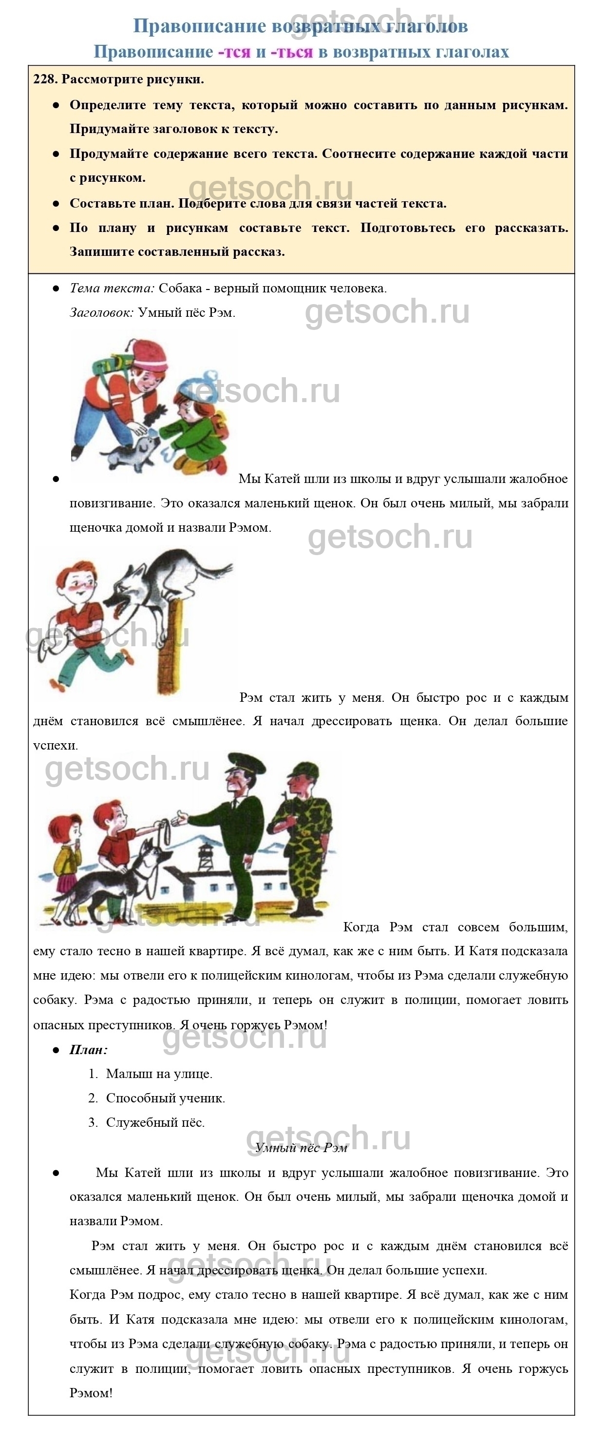 Рассмотрим ответы на Упражнение 228 из учебника по русскому языку для 4 класса Канакиной