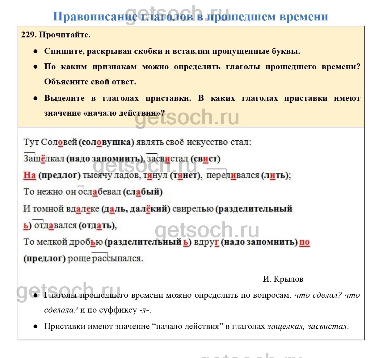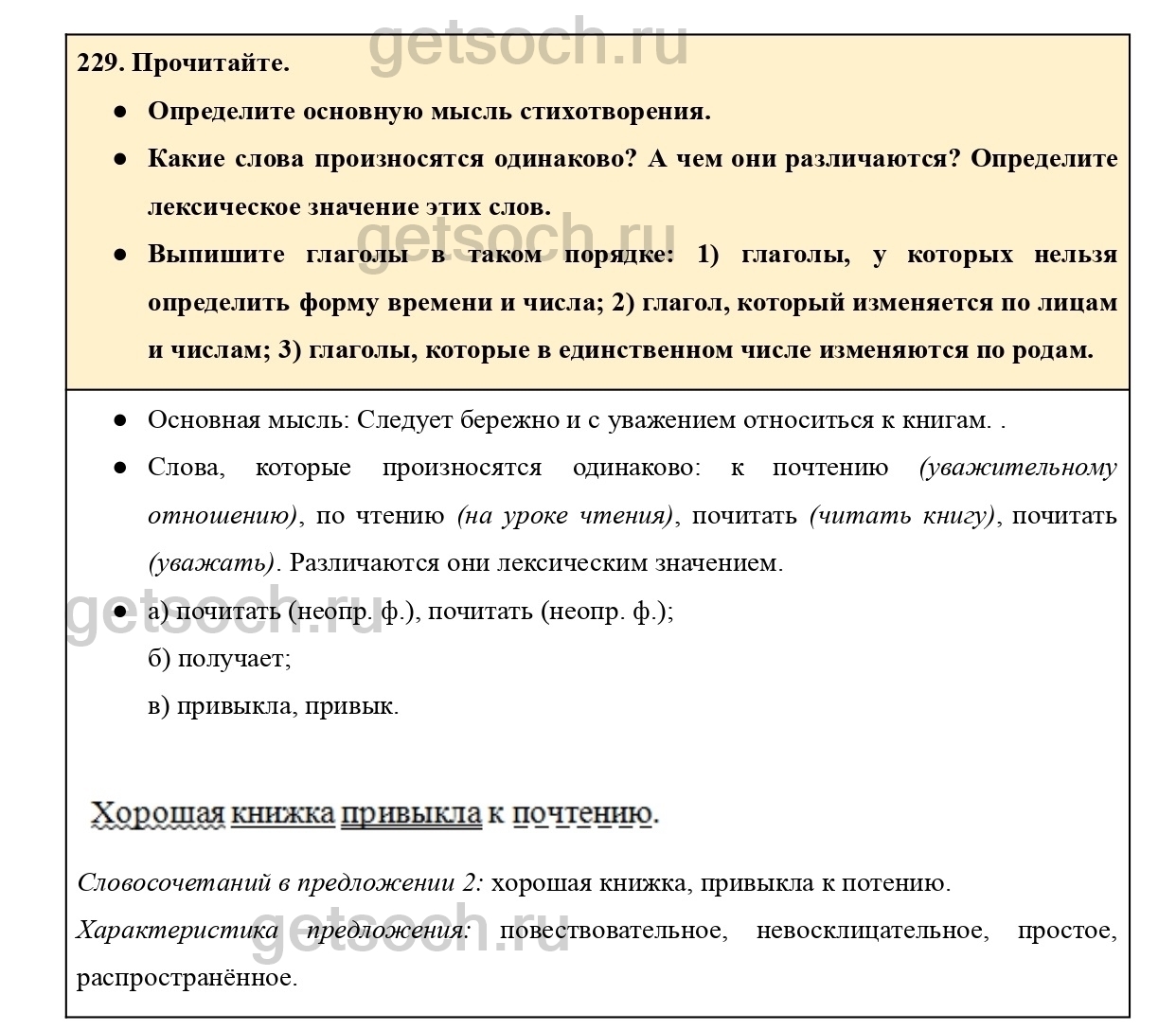 Рассмотрим ответы на Упражнение 229 из учебника по русскому языку для 4 класса Канакиной