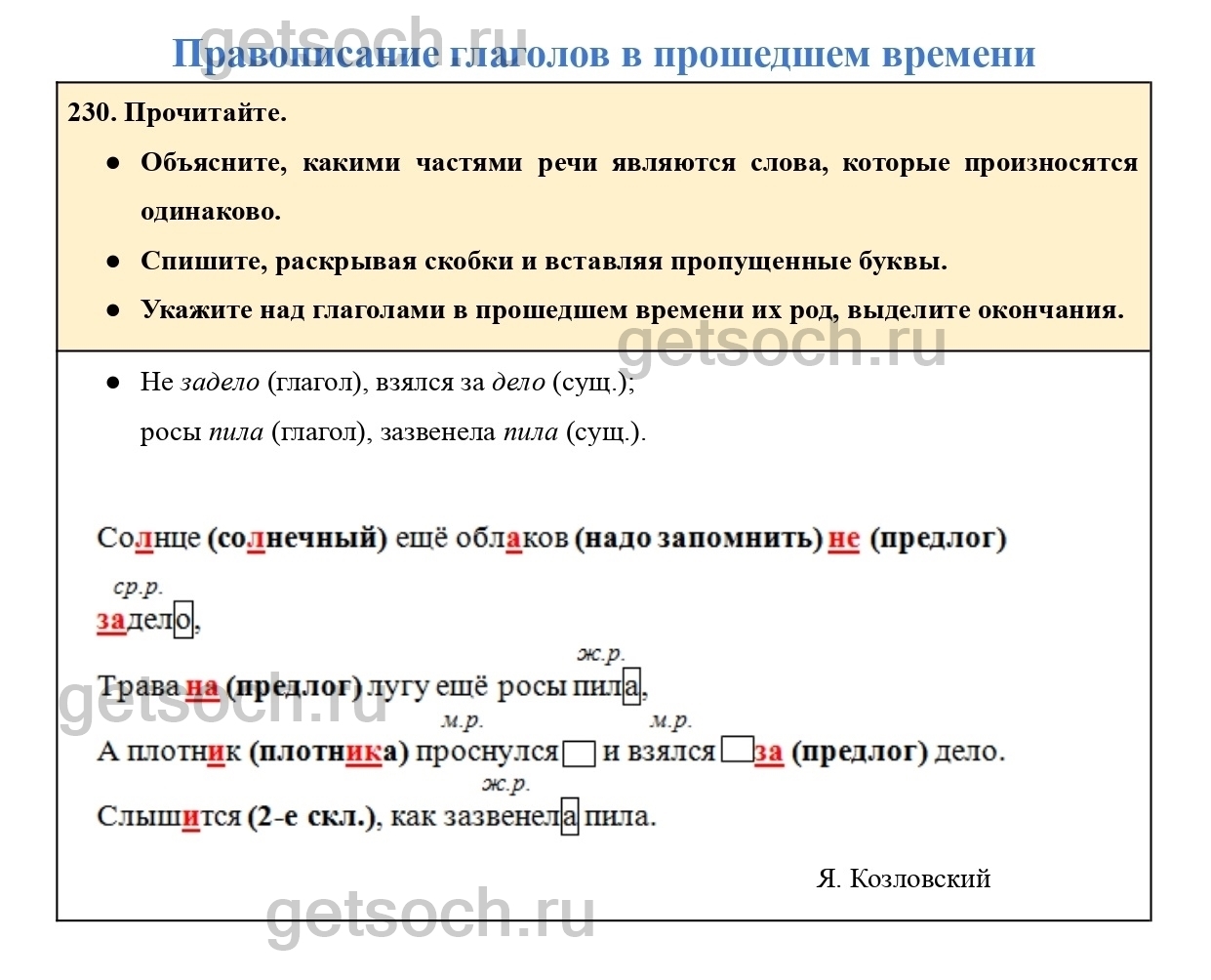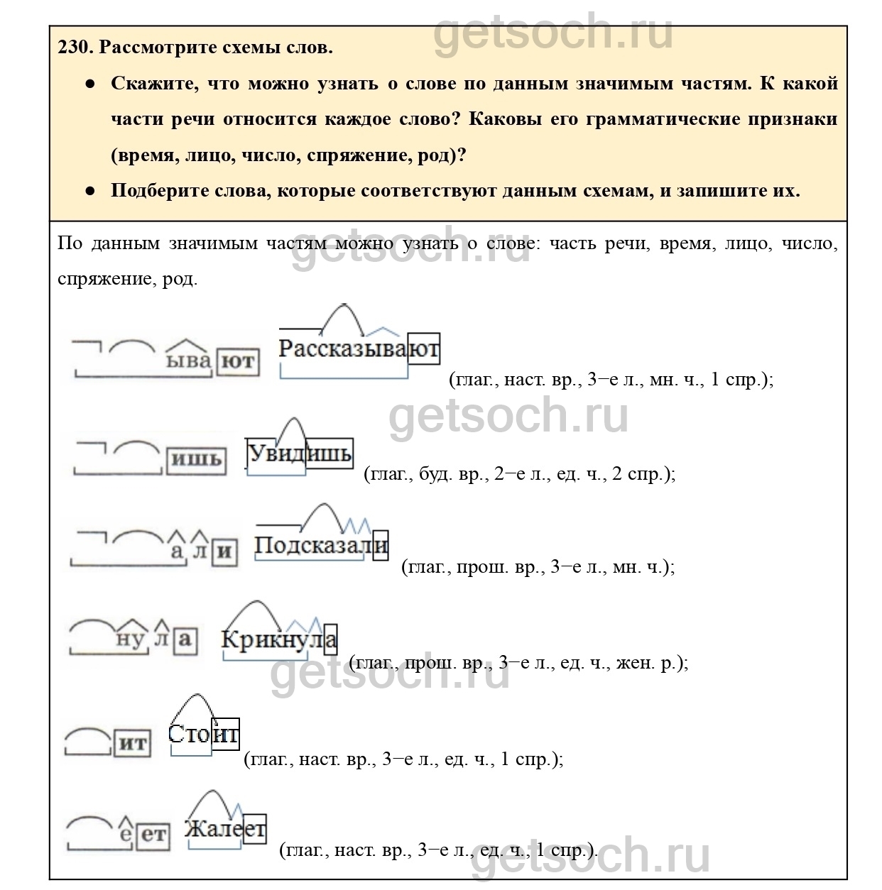 Рассмотрим ответы на Упражнение 230 из учебника по русскому языку для 4 класса Канакиной