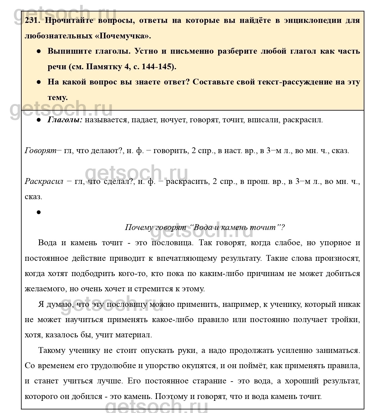 Рассмотрим ответы на Упражнение 231 из учебника по русскому языку для 4 класса Канакиной