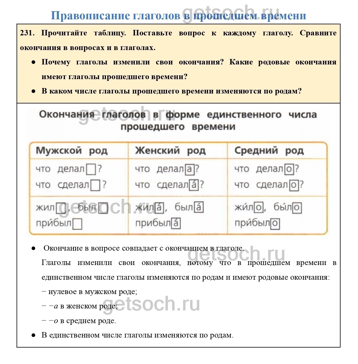 231. Прочитайте таблицу. Поставьте вопрос к каждому глаголу. Сравните окончания в вопросах и в глаголах.