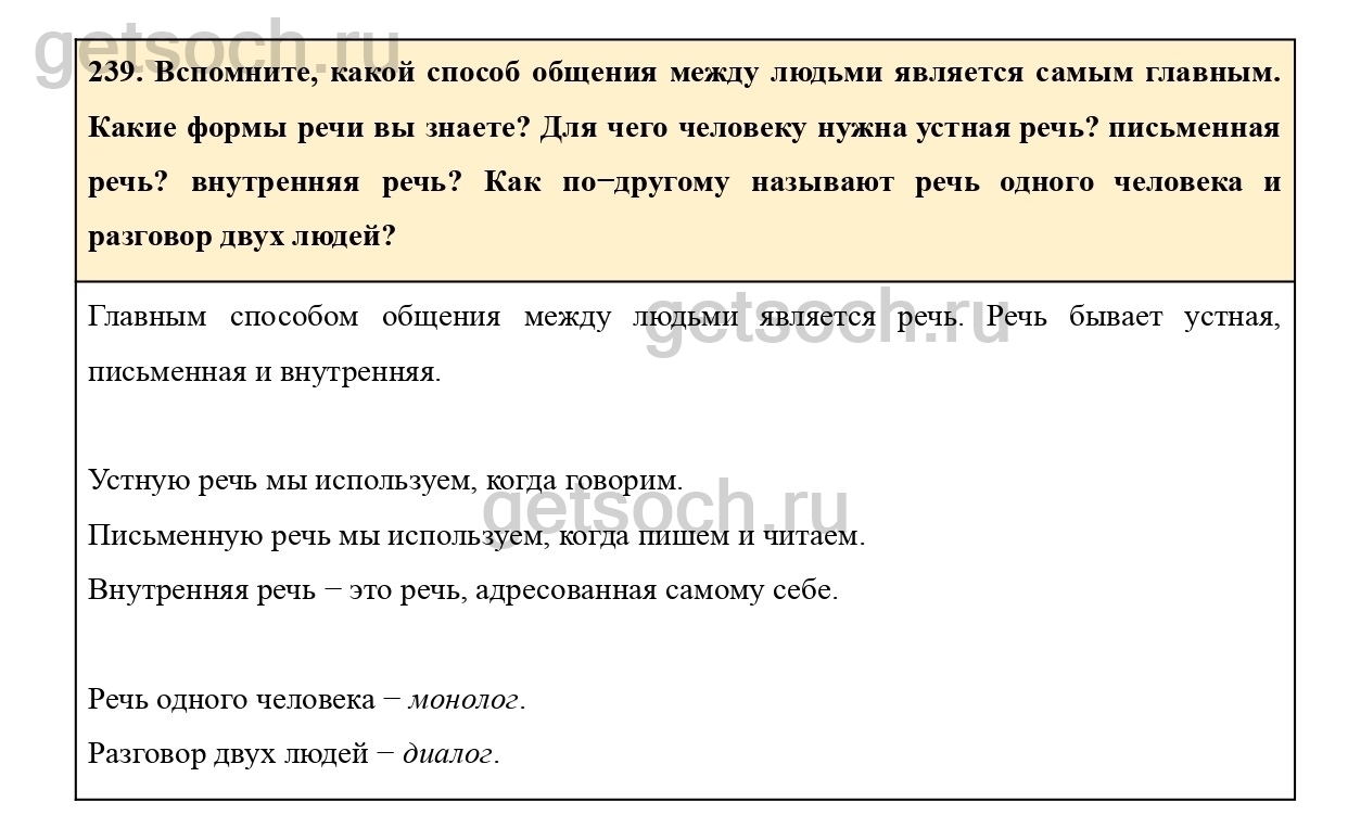 Рассмотрим ответы на Упражнение 239 из учебника по русскому языку для 4 класса Канакиной