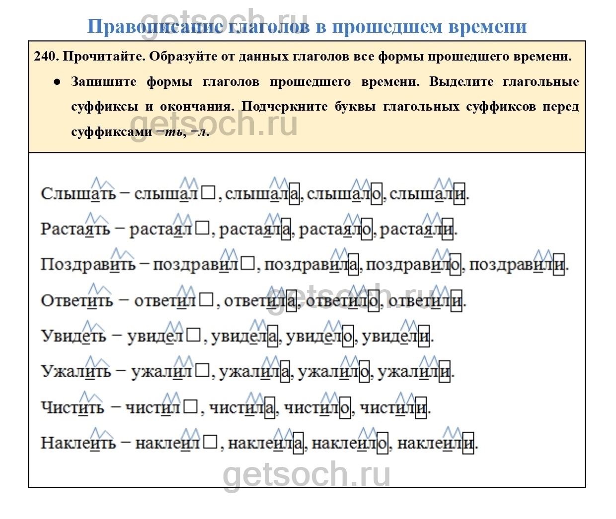 240. Прочитайте. Образуйте от данных глаголов все формы прошедшего времени.