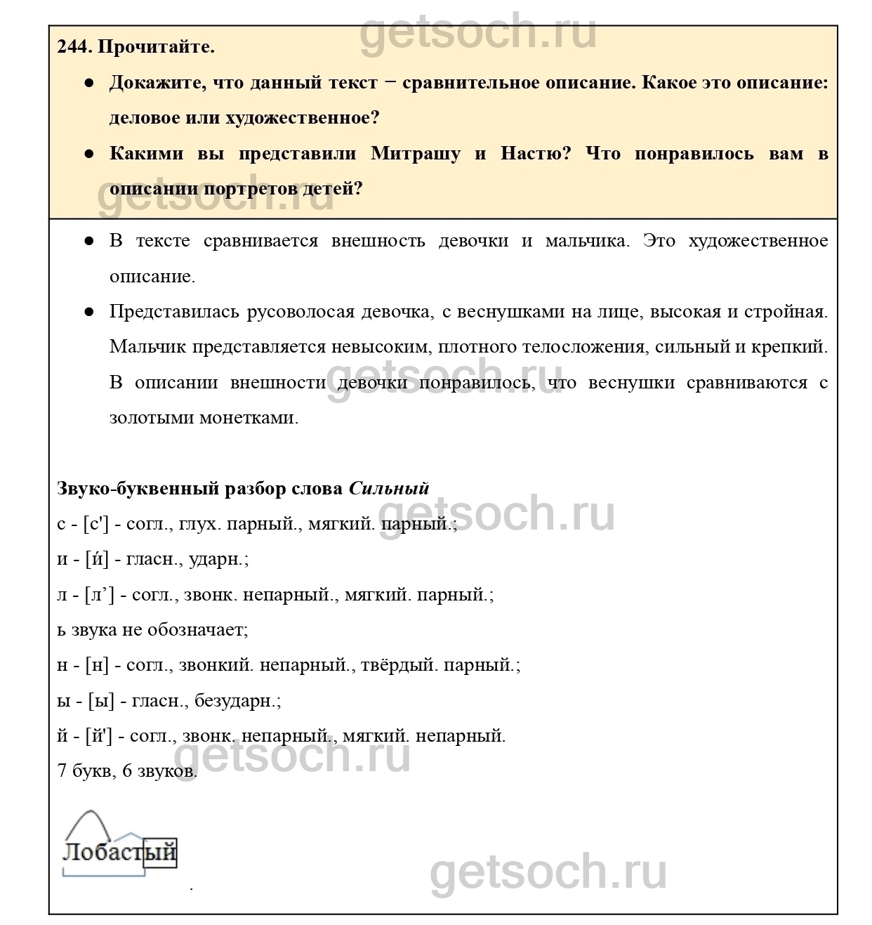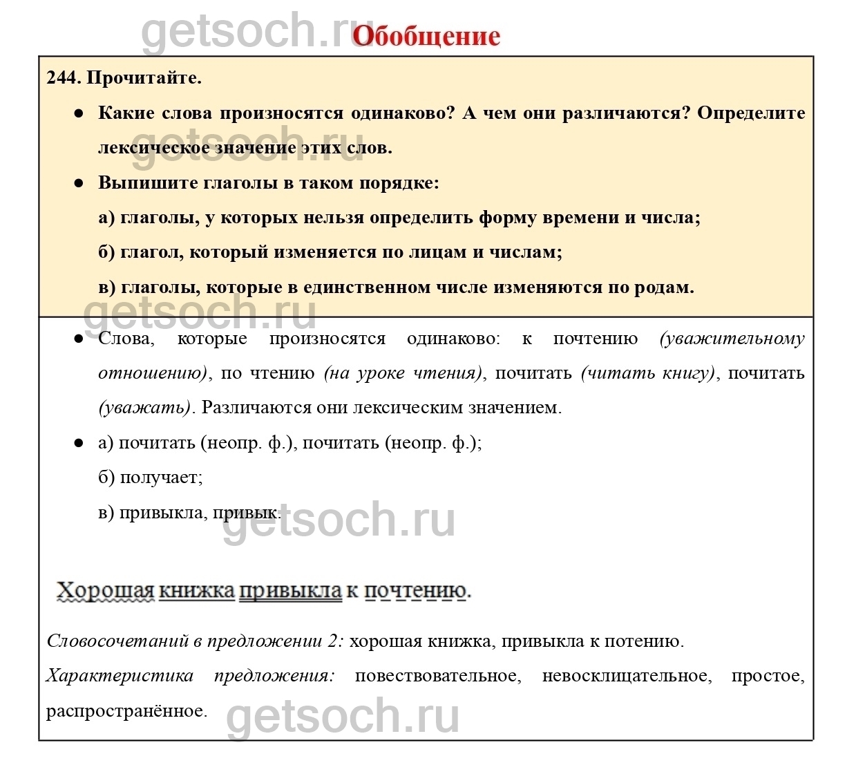 Рассмотрим ответы на Упражнение 244 из учебника по русскому языку для 4 класса Канакиной