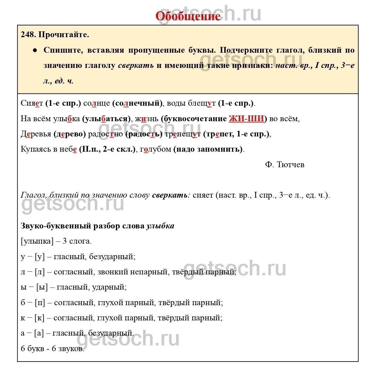 Рассмотрим ответы на Упражнение 248 из учебника по русскому языку для 4 класса Канакиной