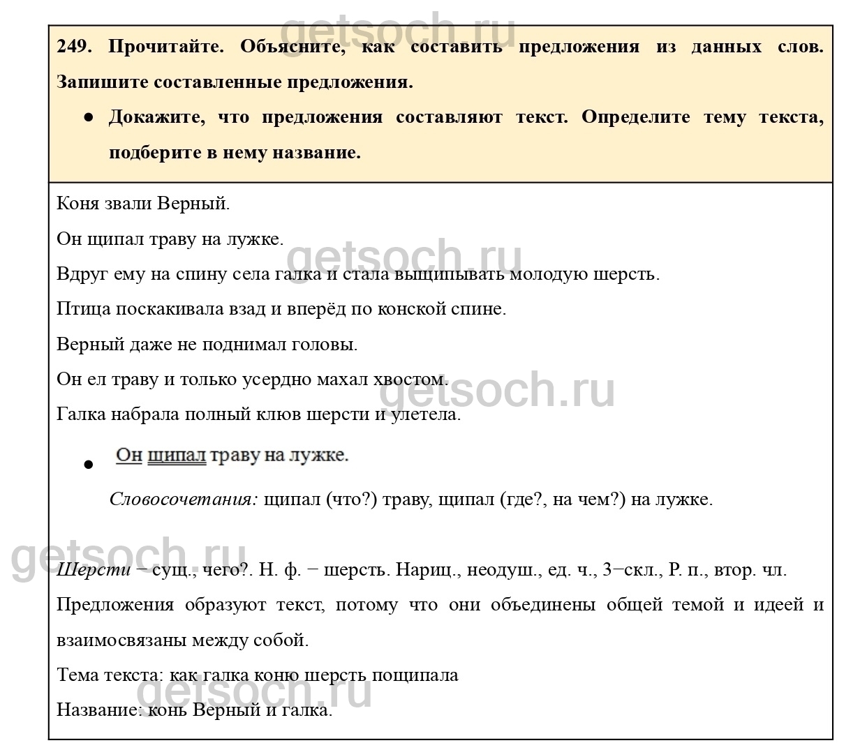 Рассмотрим ответы на Упражнение 249 из учебника по русскому языку для 4 класса Канакиной