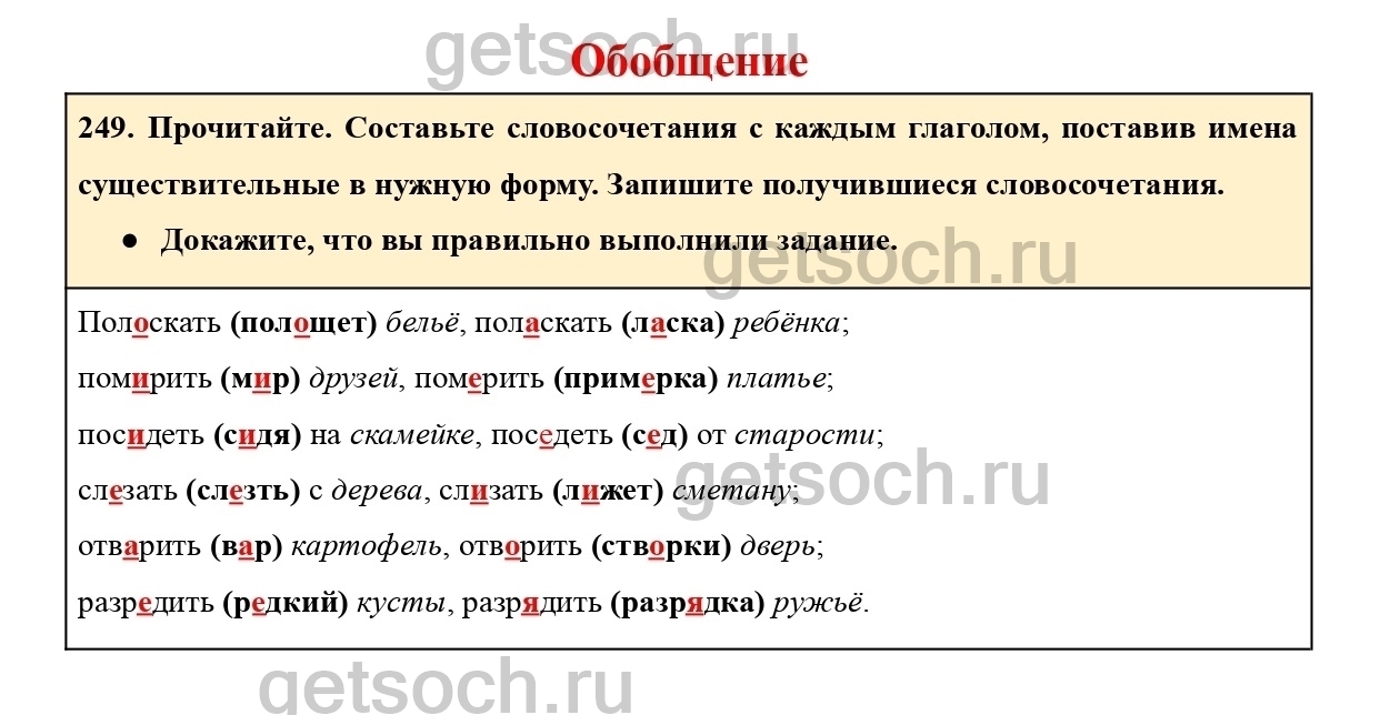249. Прочитайте. Составьте словосочетания с каждым глаголом, поставив имена существительные в нужную форму. Запишите получившиеся словосочетания.