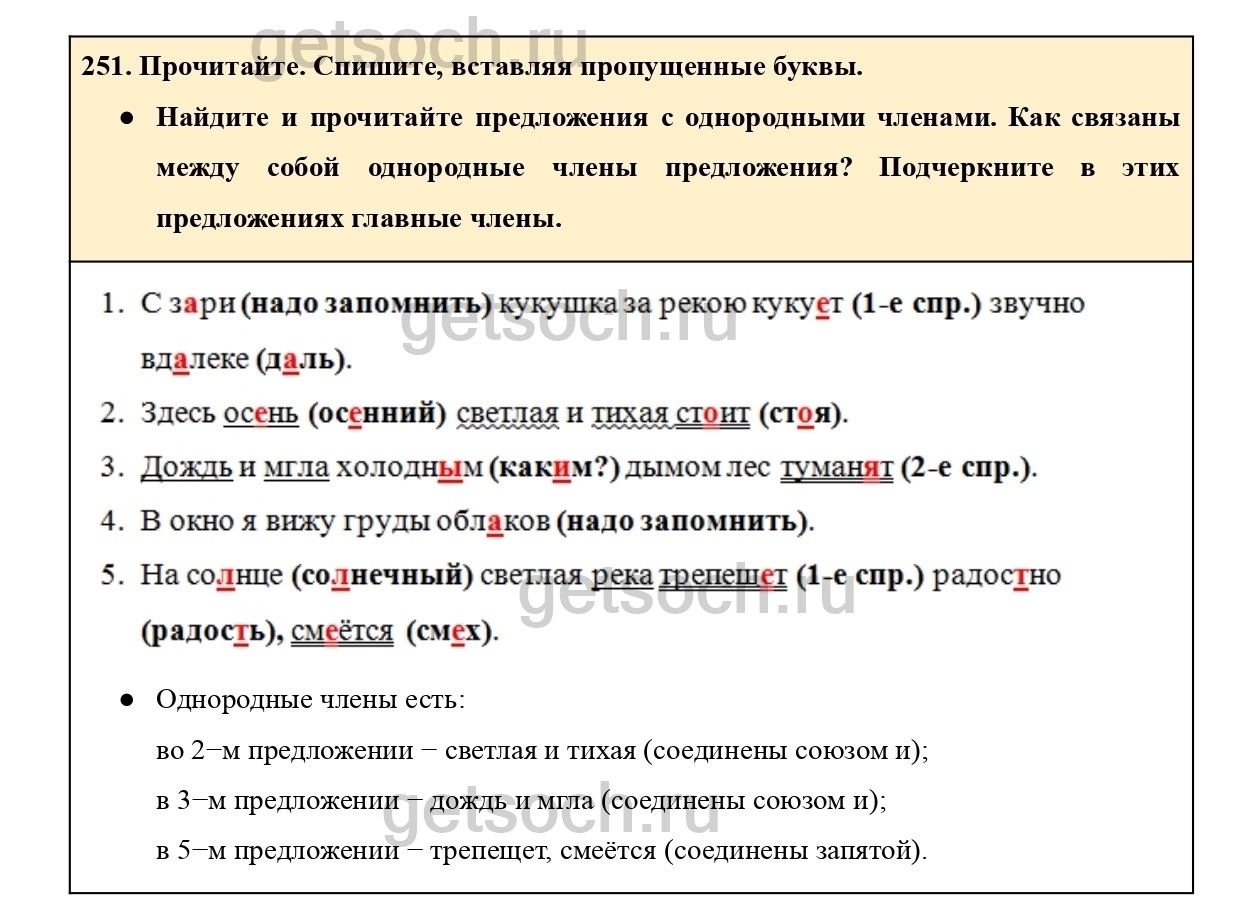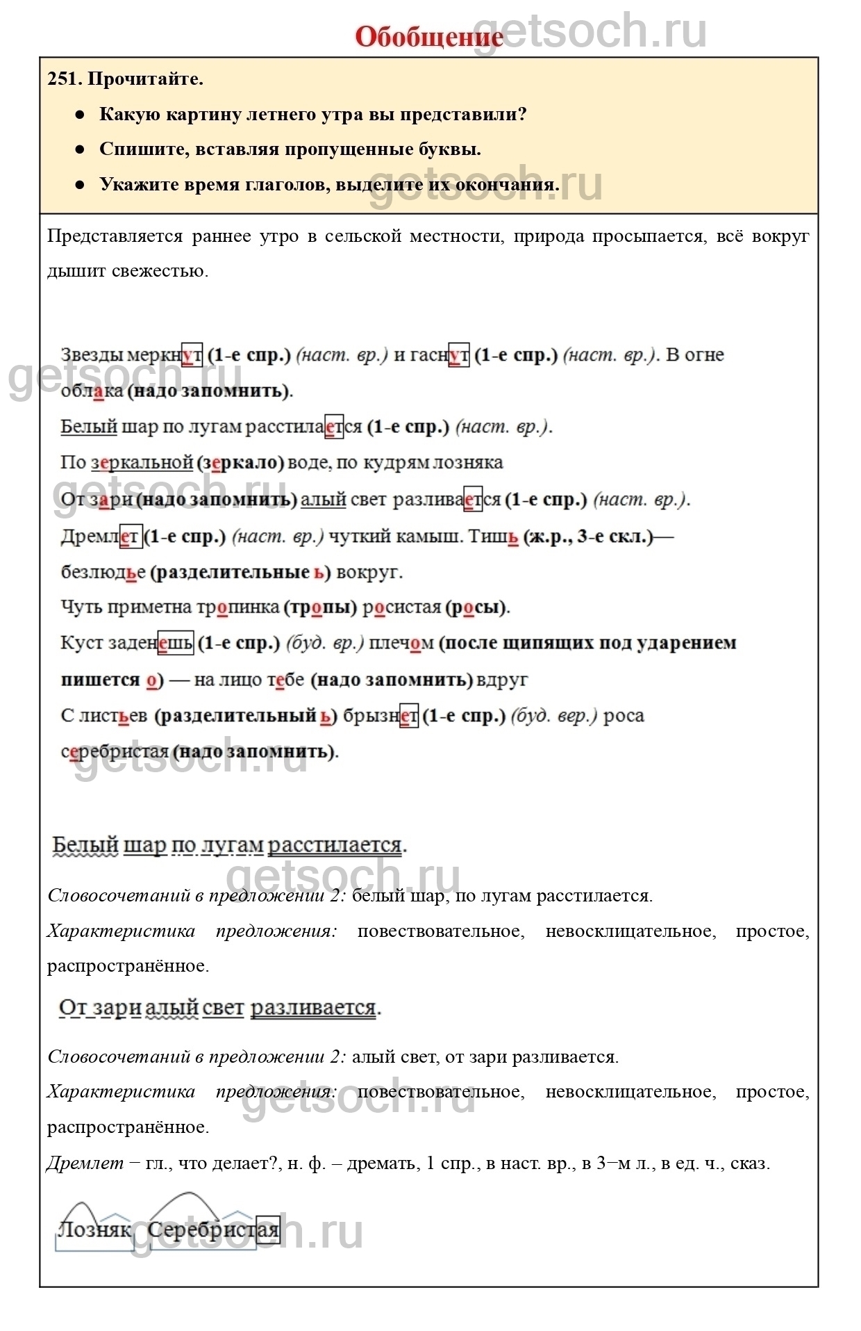 Рассмотрим ответы на Упражнение 251 из учебника по русскому языку для 4 класса Канакиной