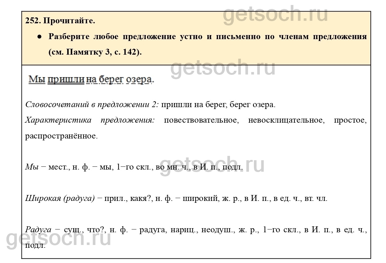 Рассмотрим ответы на Упражнение 252 из учебника по русскому языку для 4 класса Канакиной