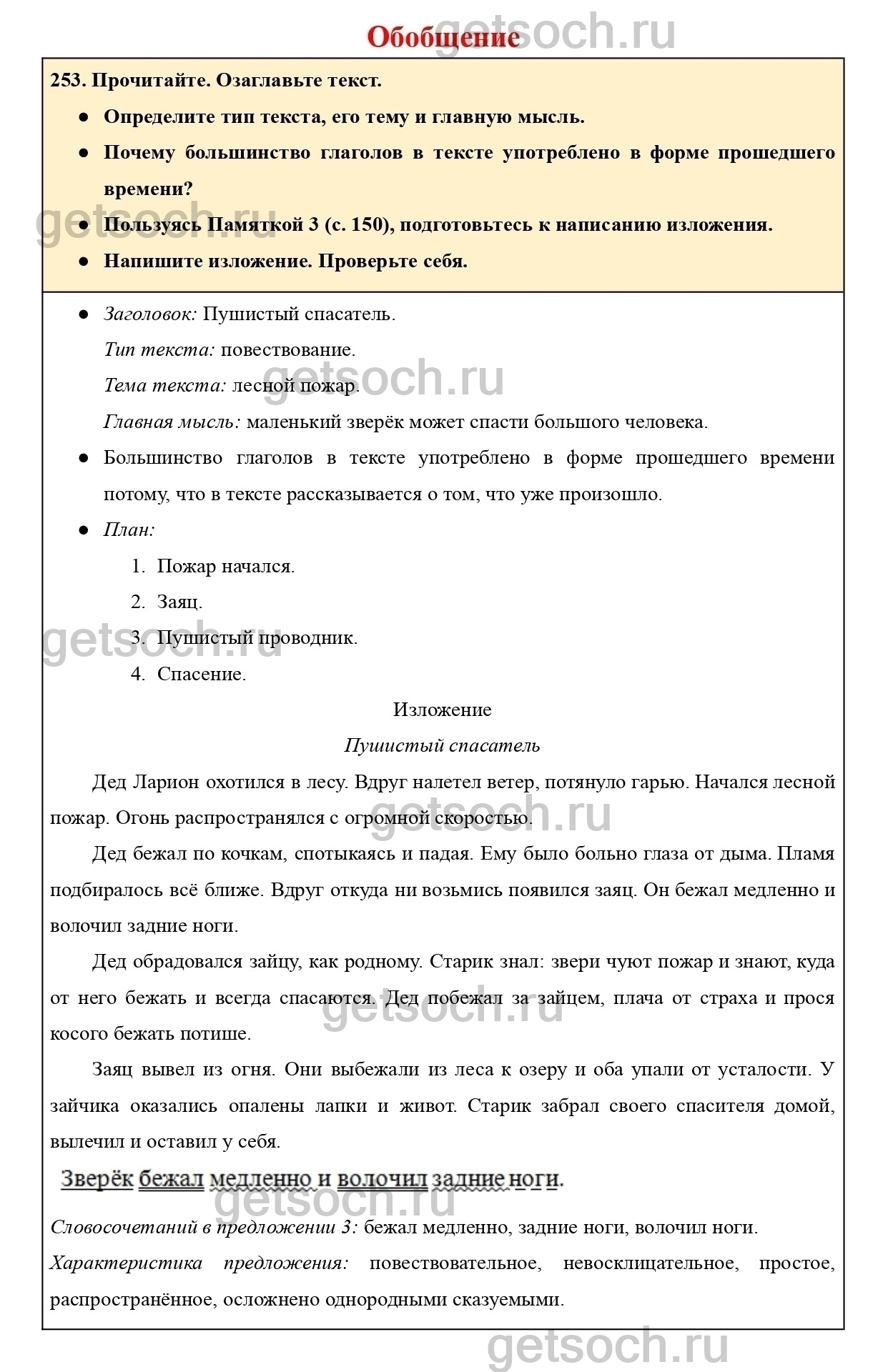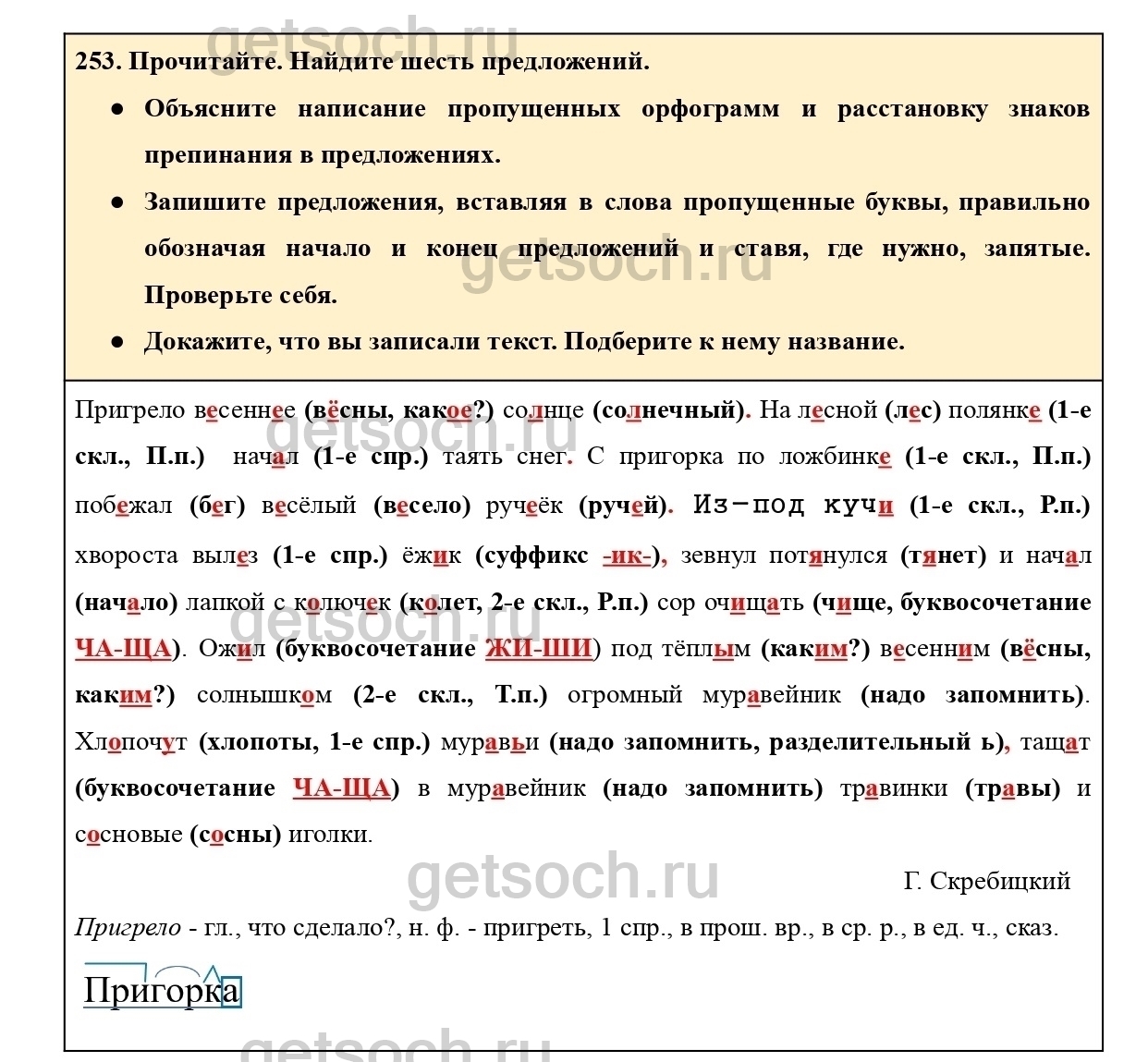 Рассмотрим ответы на Упражнение 253 из учебника по русскому языку для 4 класса Канакиной