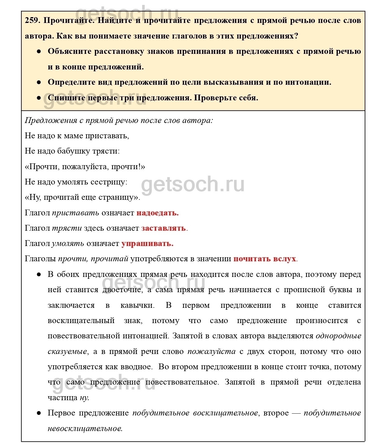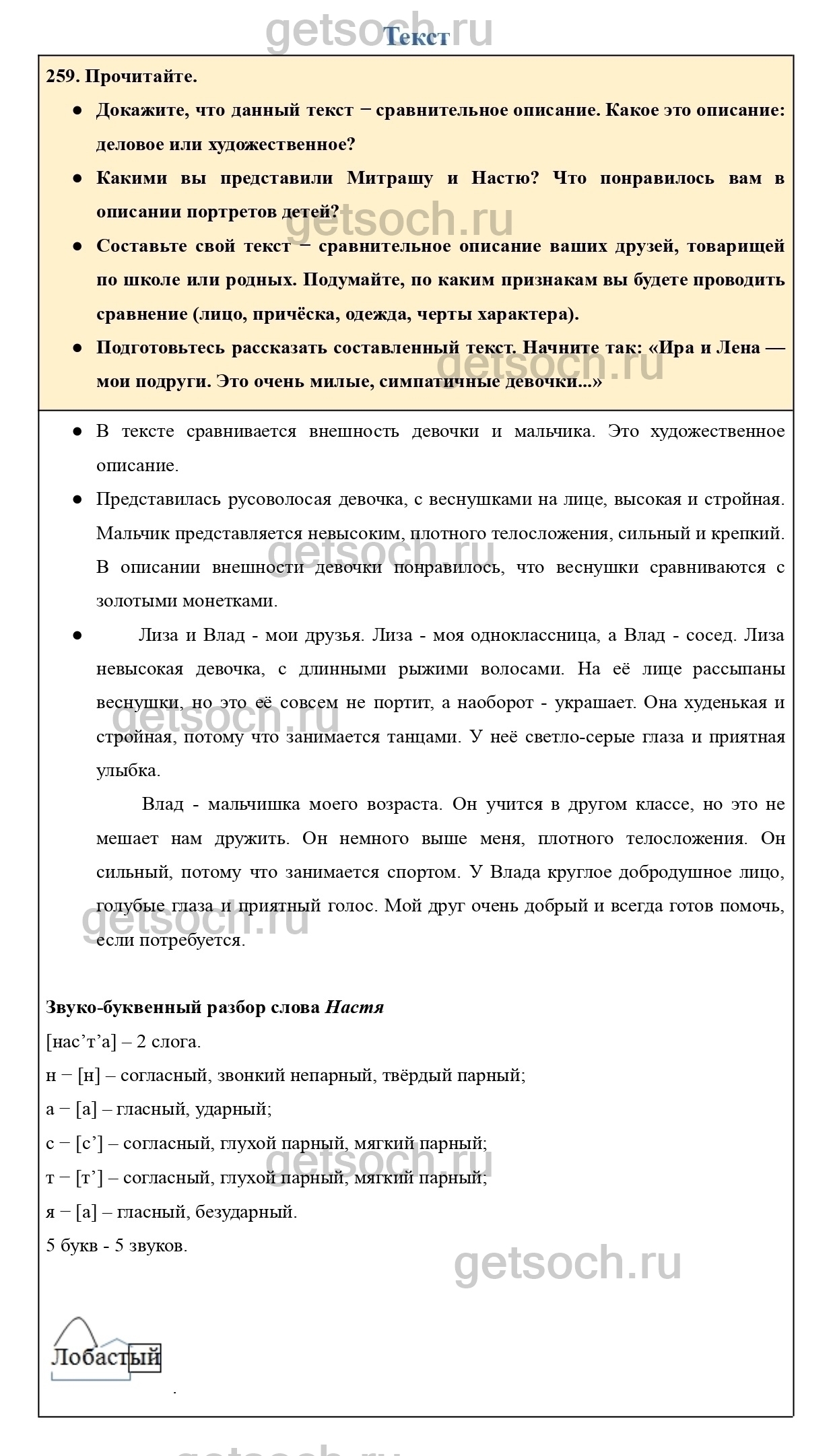 Рассмотрим ответы на Упражнение 259 из учебника по русскому языку для 4 класса Канакиной