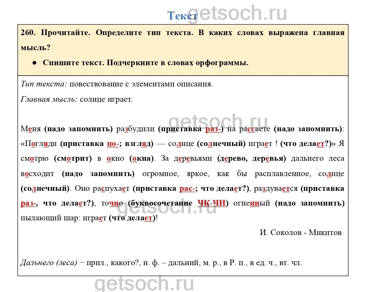 Рассмотрим ответы на Упражнение 260 из учебника по русскому языку для 4 класса Канакиной