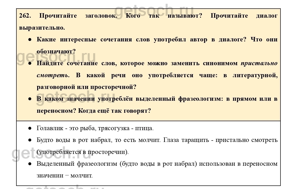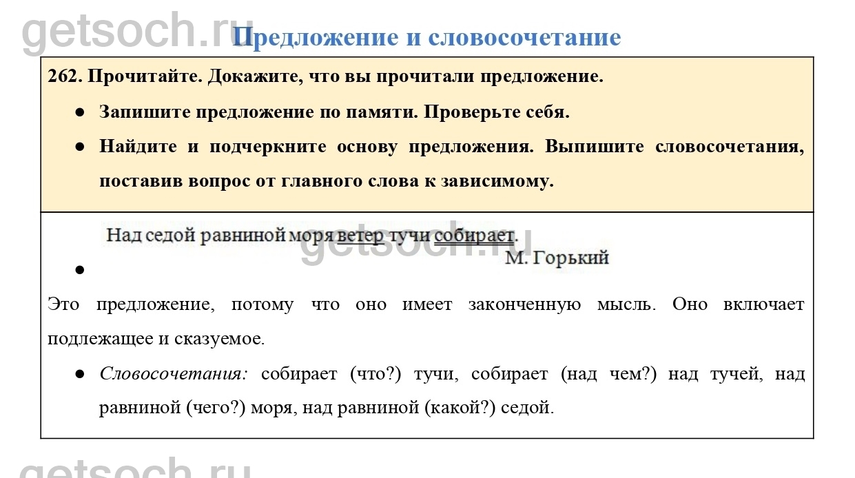 Рассмотрим ответы на Упражнение 262 из учебника по русскому языку для 4 класса Канакиной
