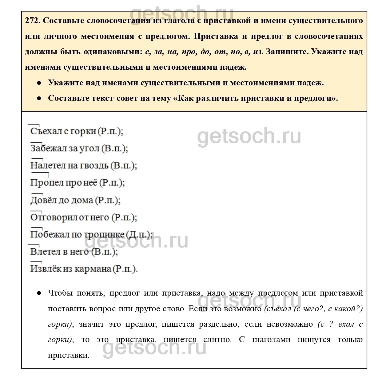 Рассмотрим ответы на Упражнение 272 из учебника по русскому языку для 4 класса Канакиной