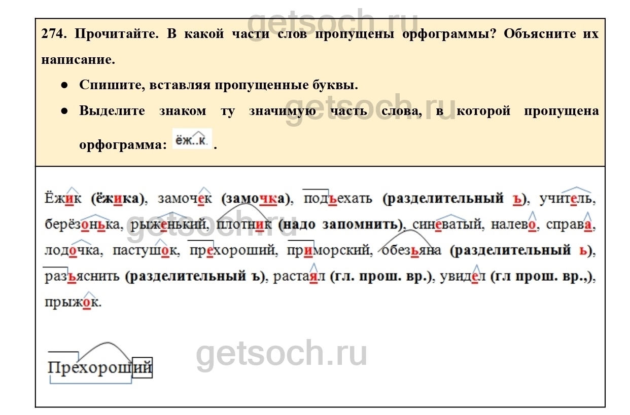 Рассмотрим ответы на Упражнение 274 из учебника по русскому языку для 4 класса Канакиной