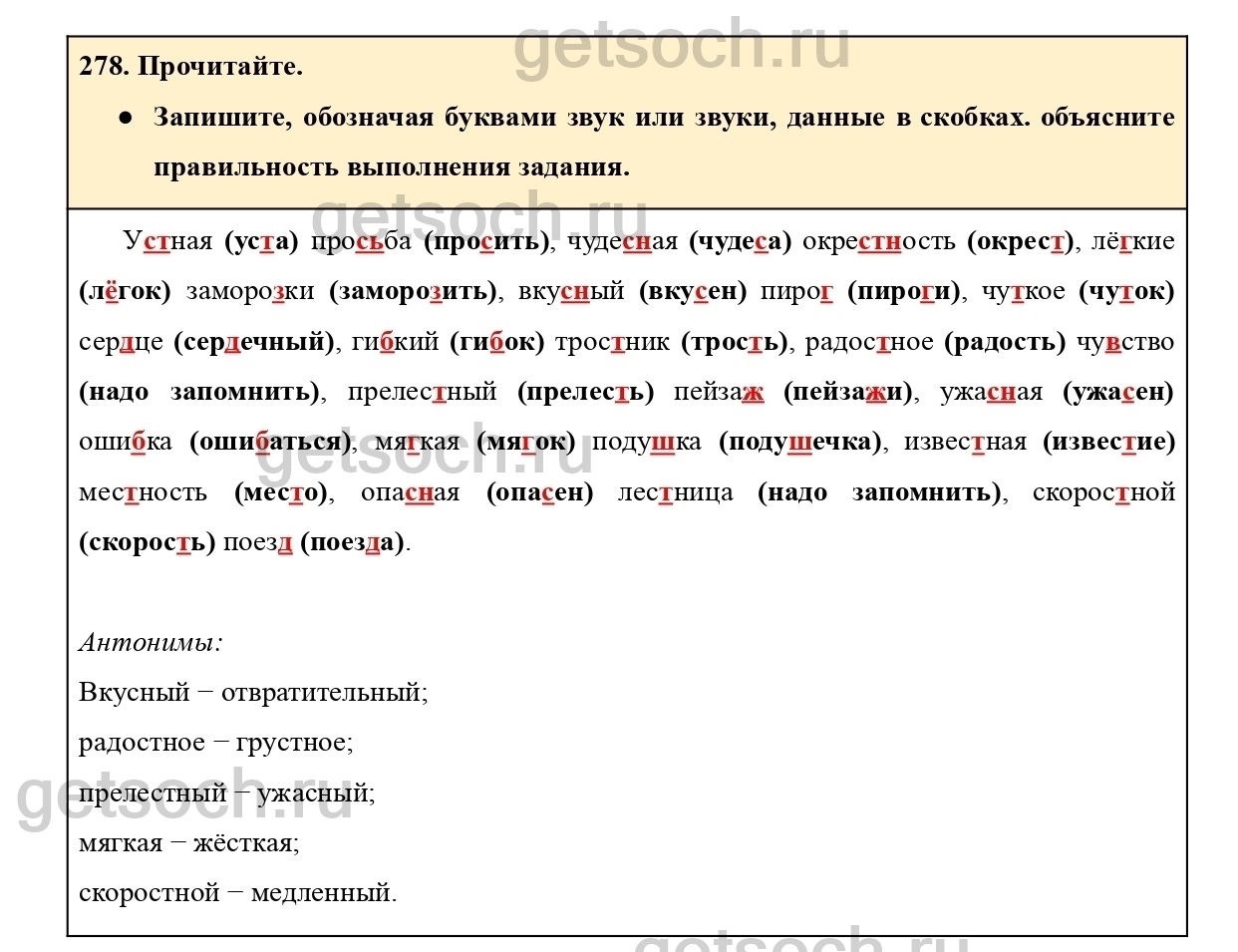 Рассмотрим ответы на Упражнение 278 из учебника по русскому языку для 4 класса Канакиной