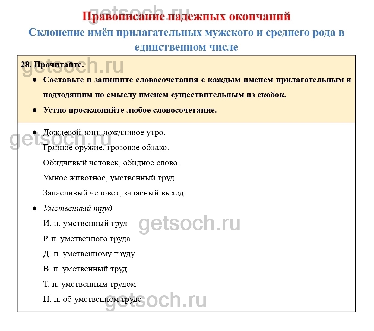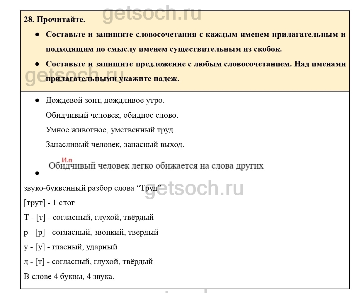 Рассмотрим ответы на Упражнение 28 из учебника по русскому языку для 4 класса Канакиной