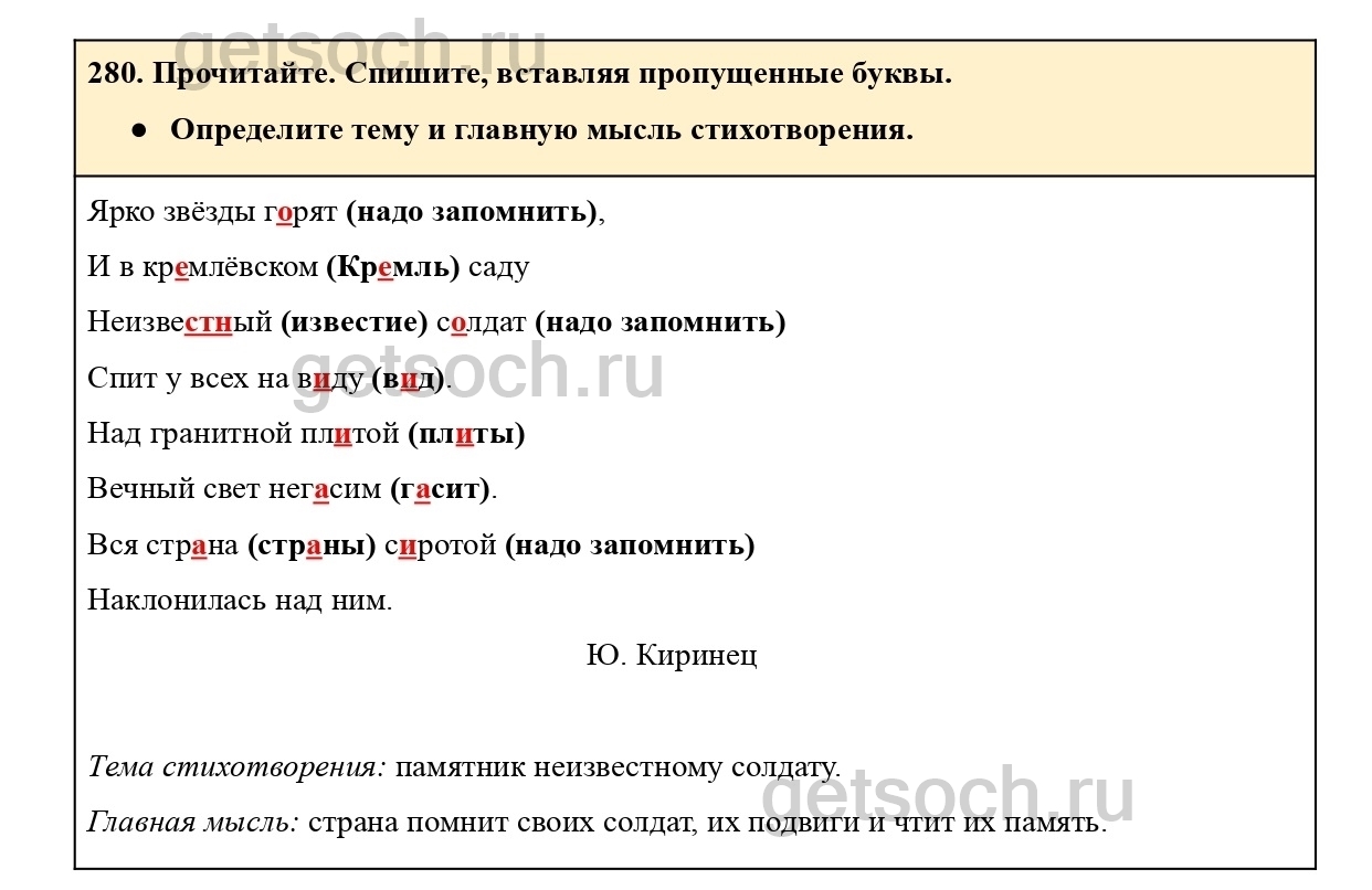 Рассмотрим ответы на Упражнение 280 из учебника по русскому языку для 4 класса Канакиной