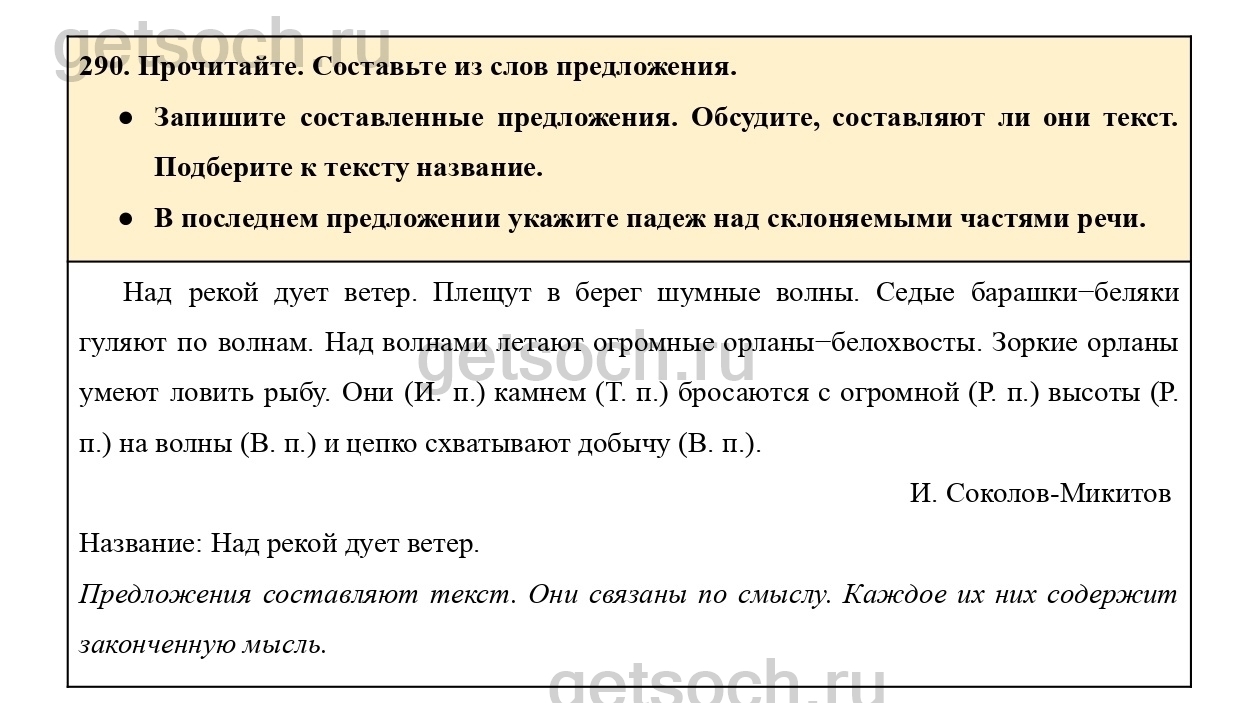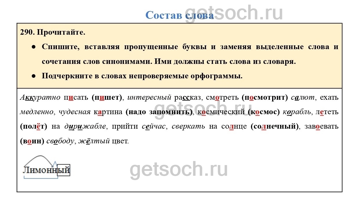 Рассмотрим ответы на Упражнение 290 из учебника по русскому языку для 4 класса Канакиной