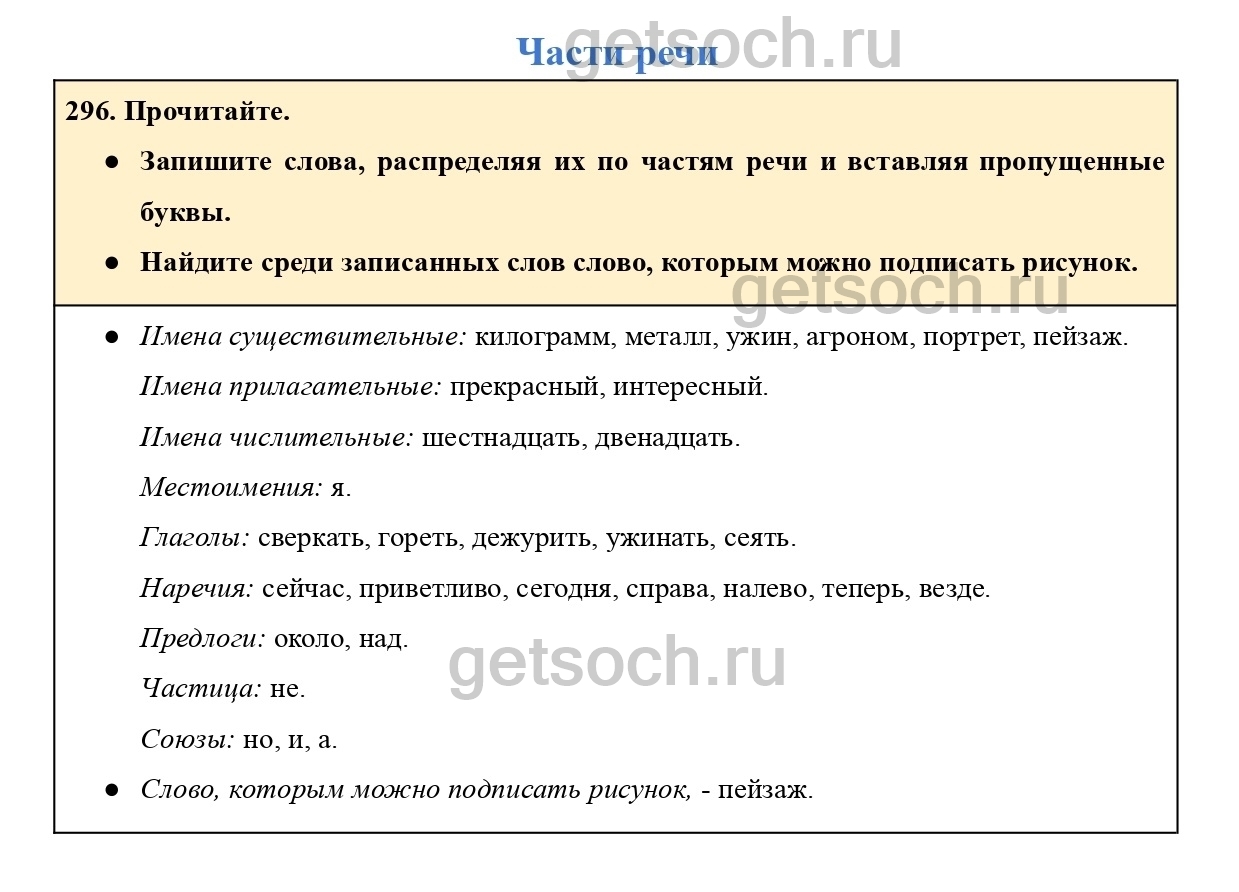 Рассмотрим ответы на Упражнение 296 из учебника по русскому языку для 4 класса Канакиной