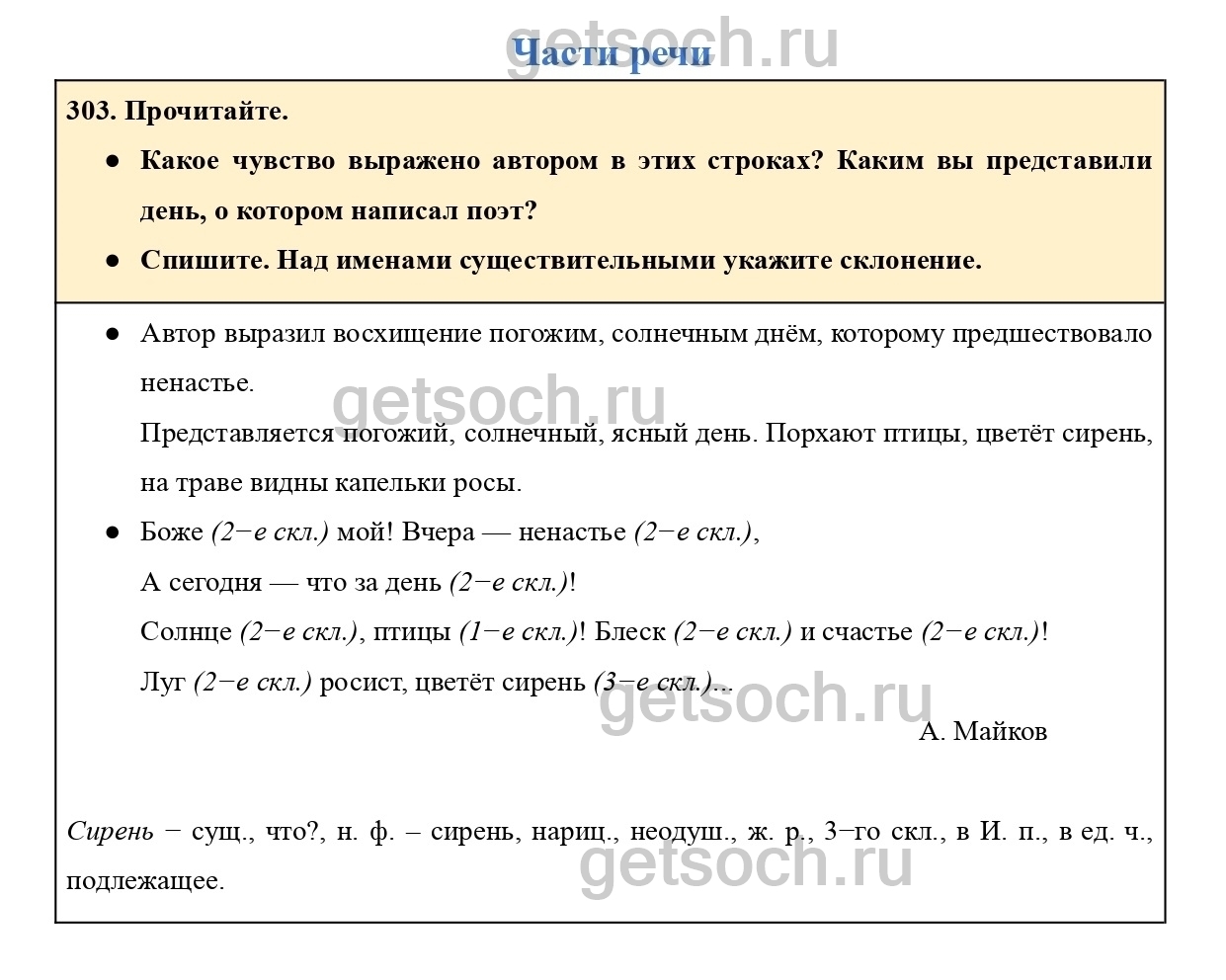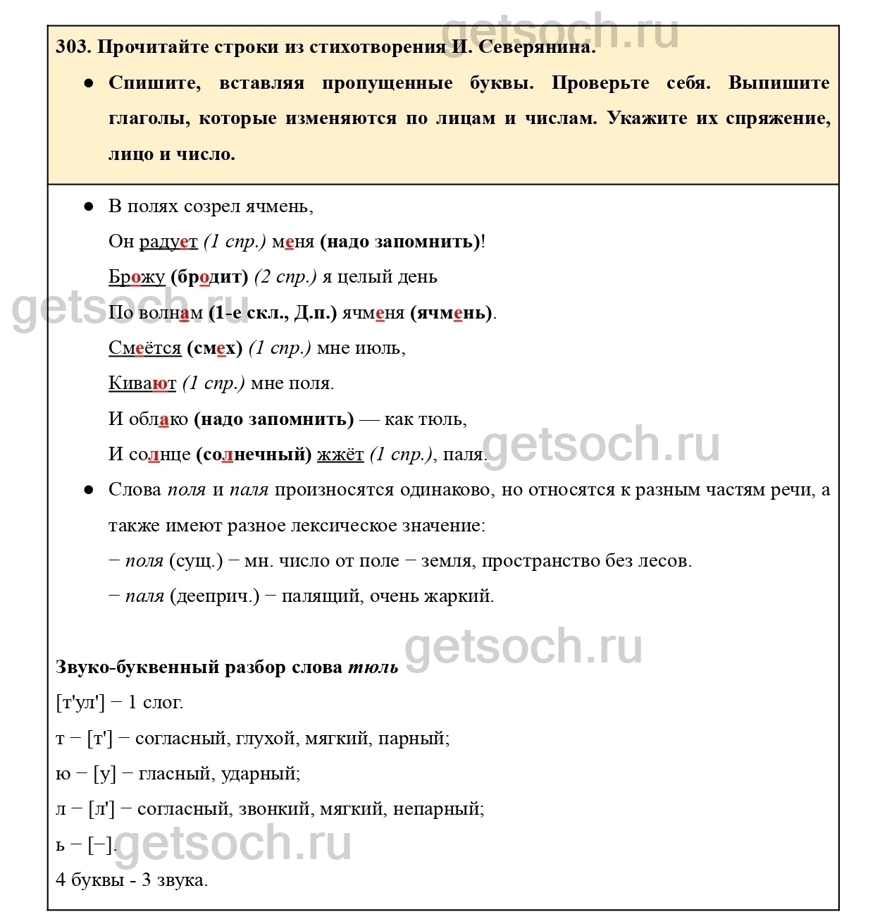Рассмотрим ответы на Упражнение 303 из учебника по русскому языку для 4 класса Канакиной