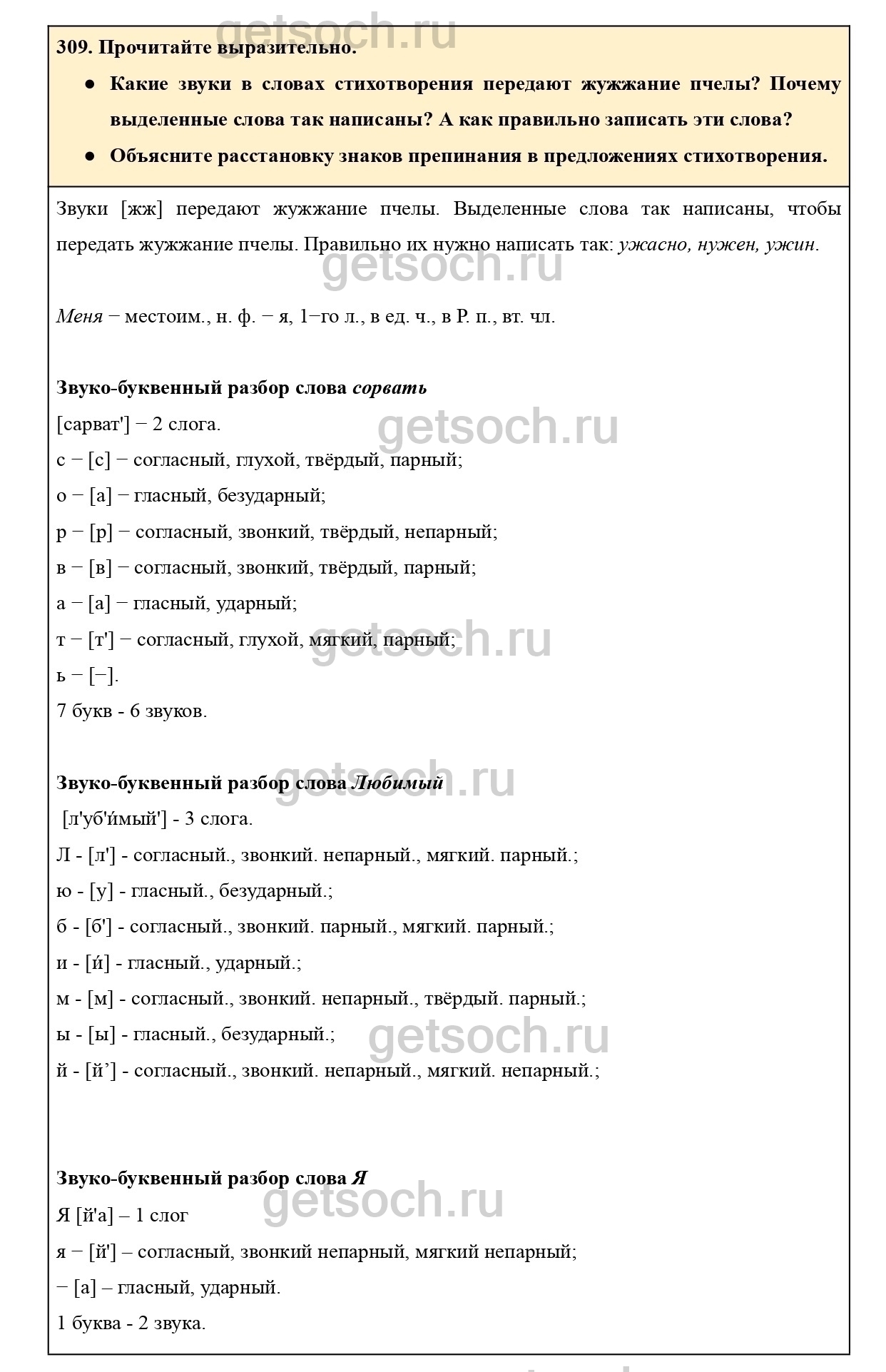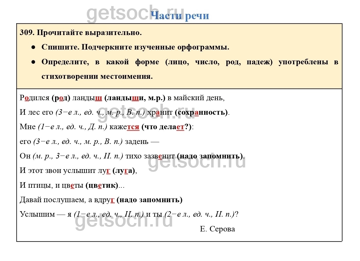 Рассмотрим ответы на Упражнение 309 из учебника по русскому языку для 4 класса Канакиной