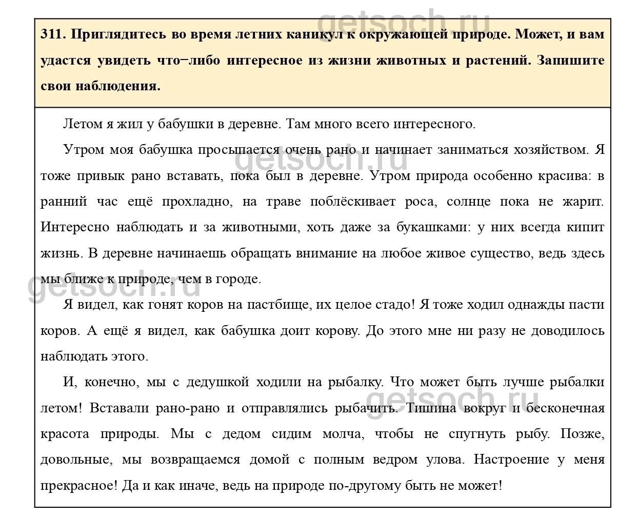 Рассмотрим ответы на Упражнение 311 из учебника по русскому языку для 4 класса Канакиной