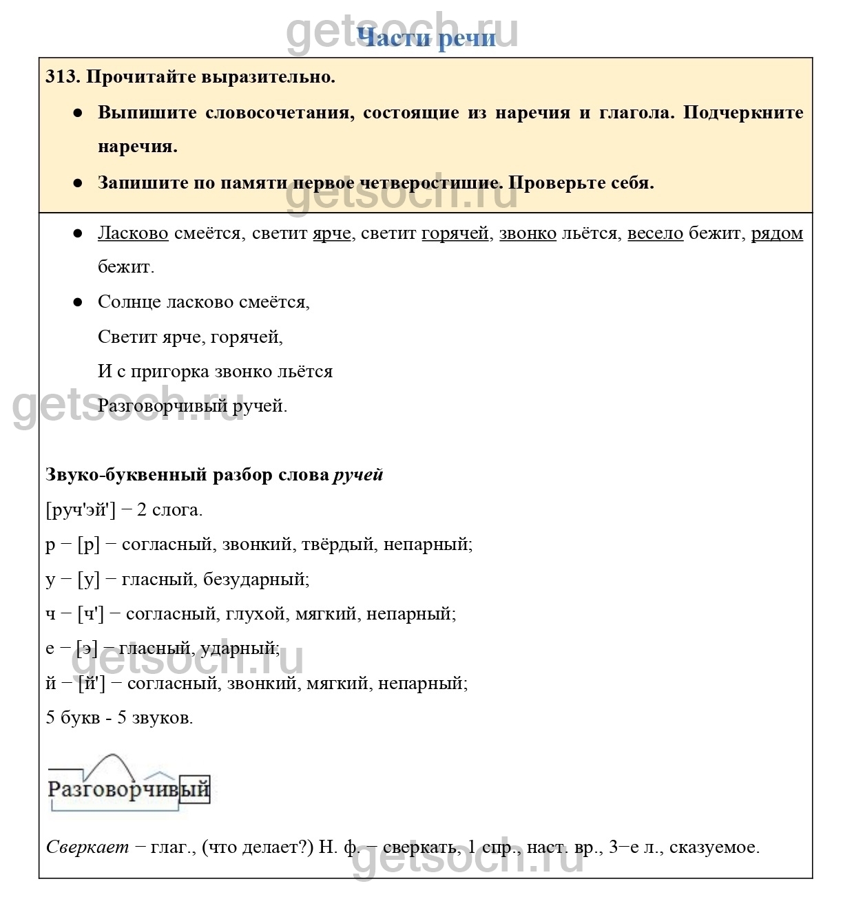 Рассмотрим ответы на Упражнение 313 из учебника по русскому языку для 4 класса Канакиной