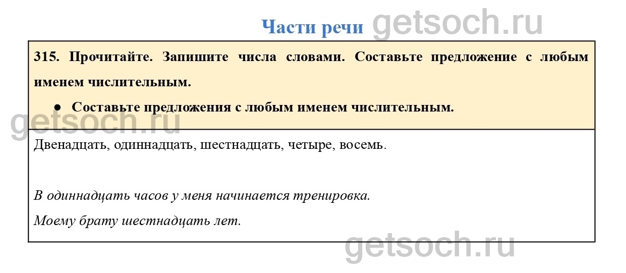 315. Прочитайте. Запишите числа словами. Составьте предложение с любым именем числительным.
