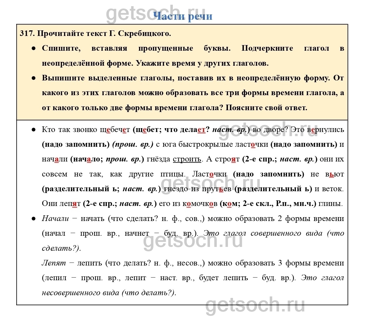 Рассмотрим ответы на Упражнение 317 из учебника по русскому языку для 4 класса Канакиной