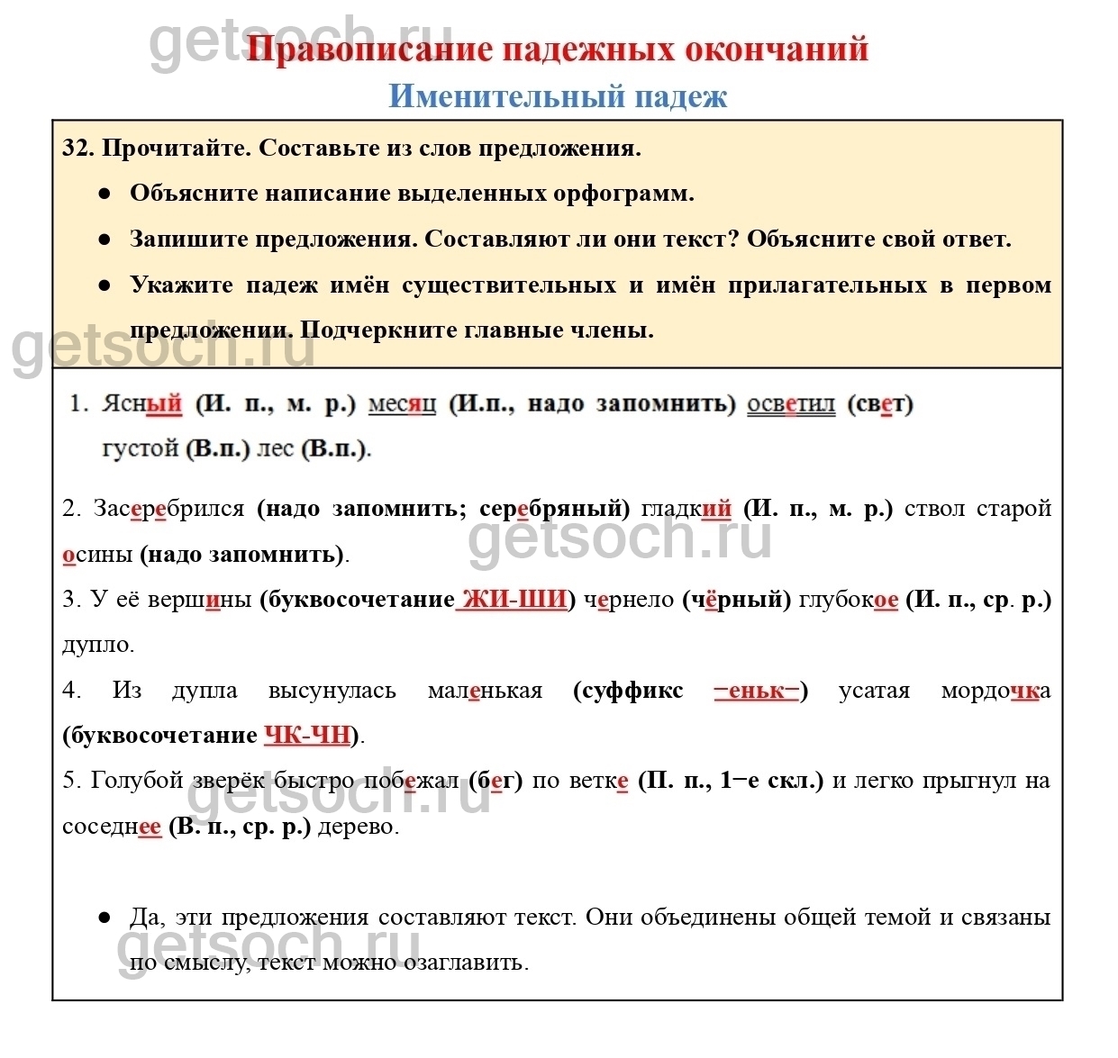 Рассмотрим ответы на Упражнение 32 из учебника по русскому языку для 4 класса Канакиной