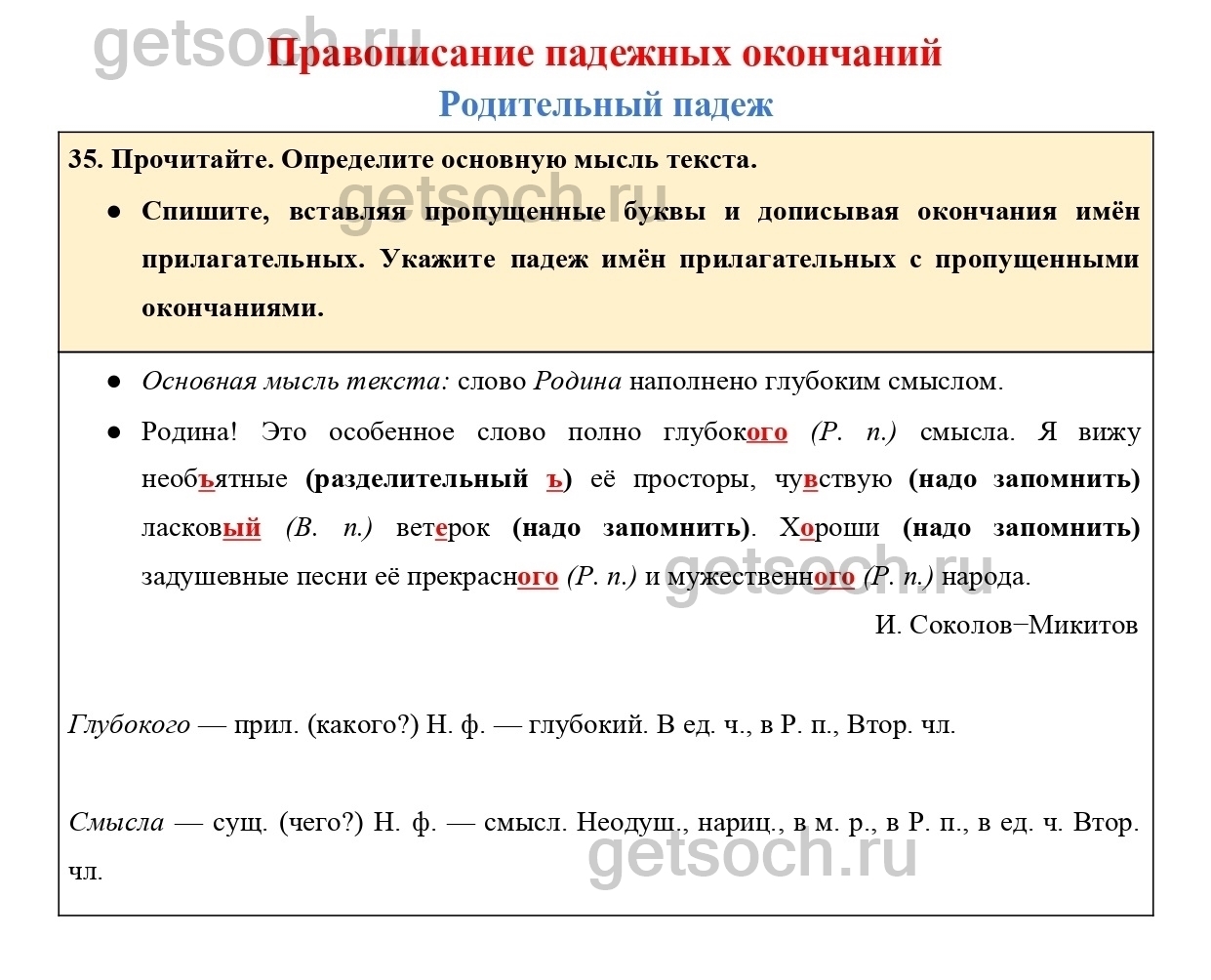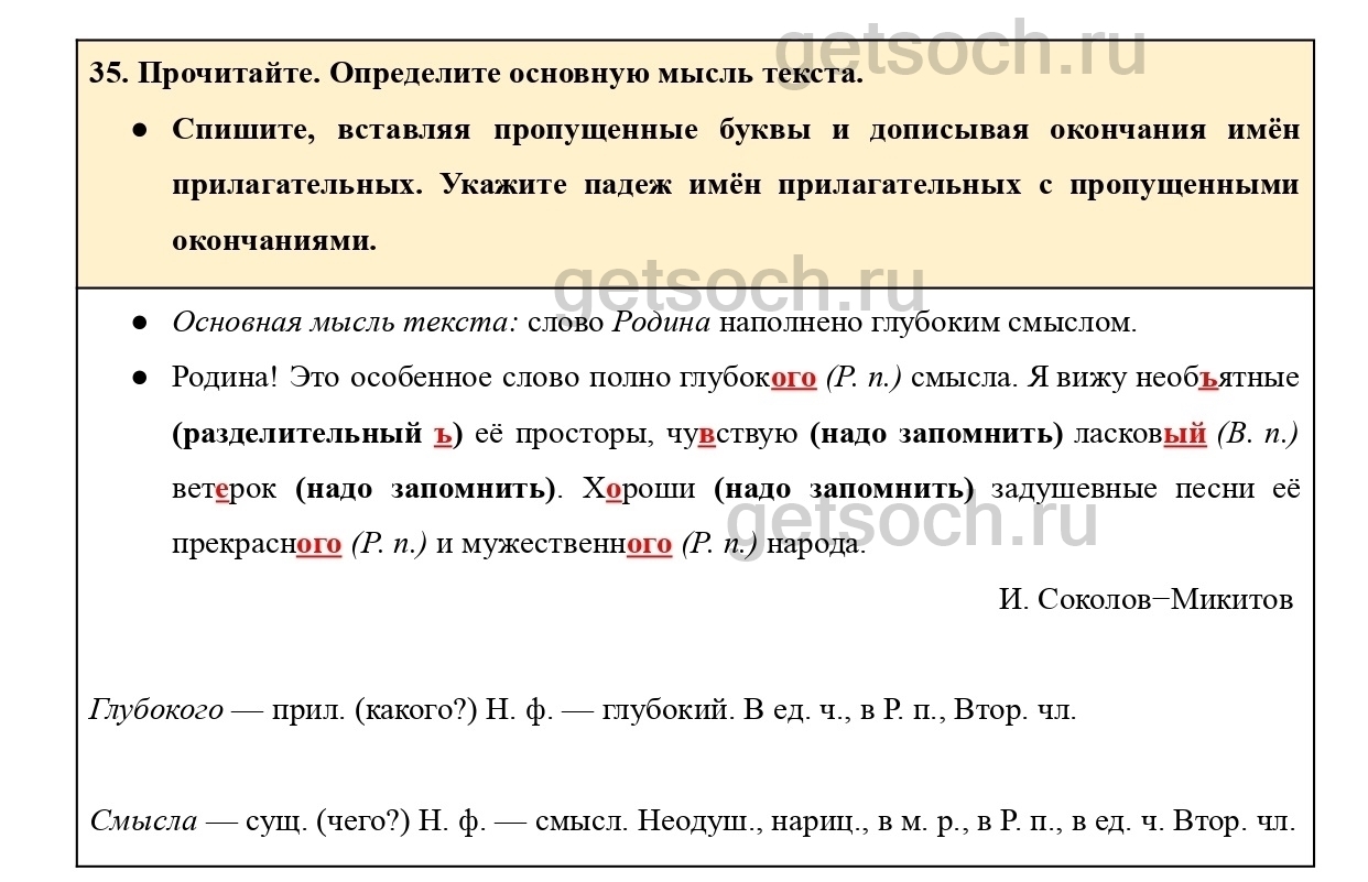 Рассмотрим ответы на Упражнение 35 из учебника по русскому языку для 4 класса Канакиной