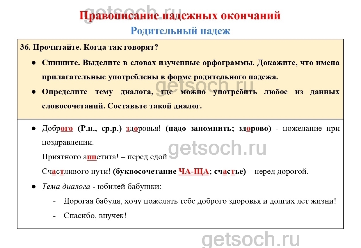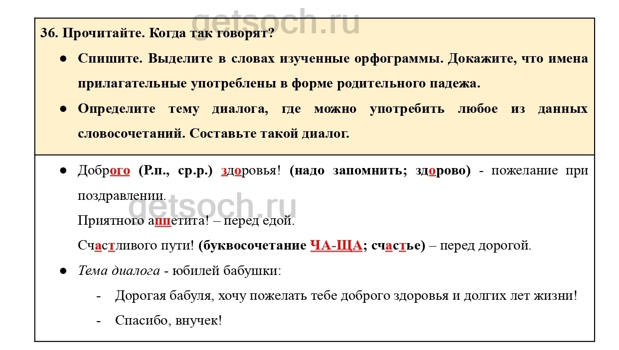 Рассмотрим ответы на Упражнение 36 из учебника по русскому языку для 4 класса Канакиной