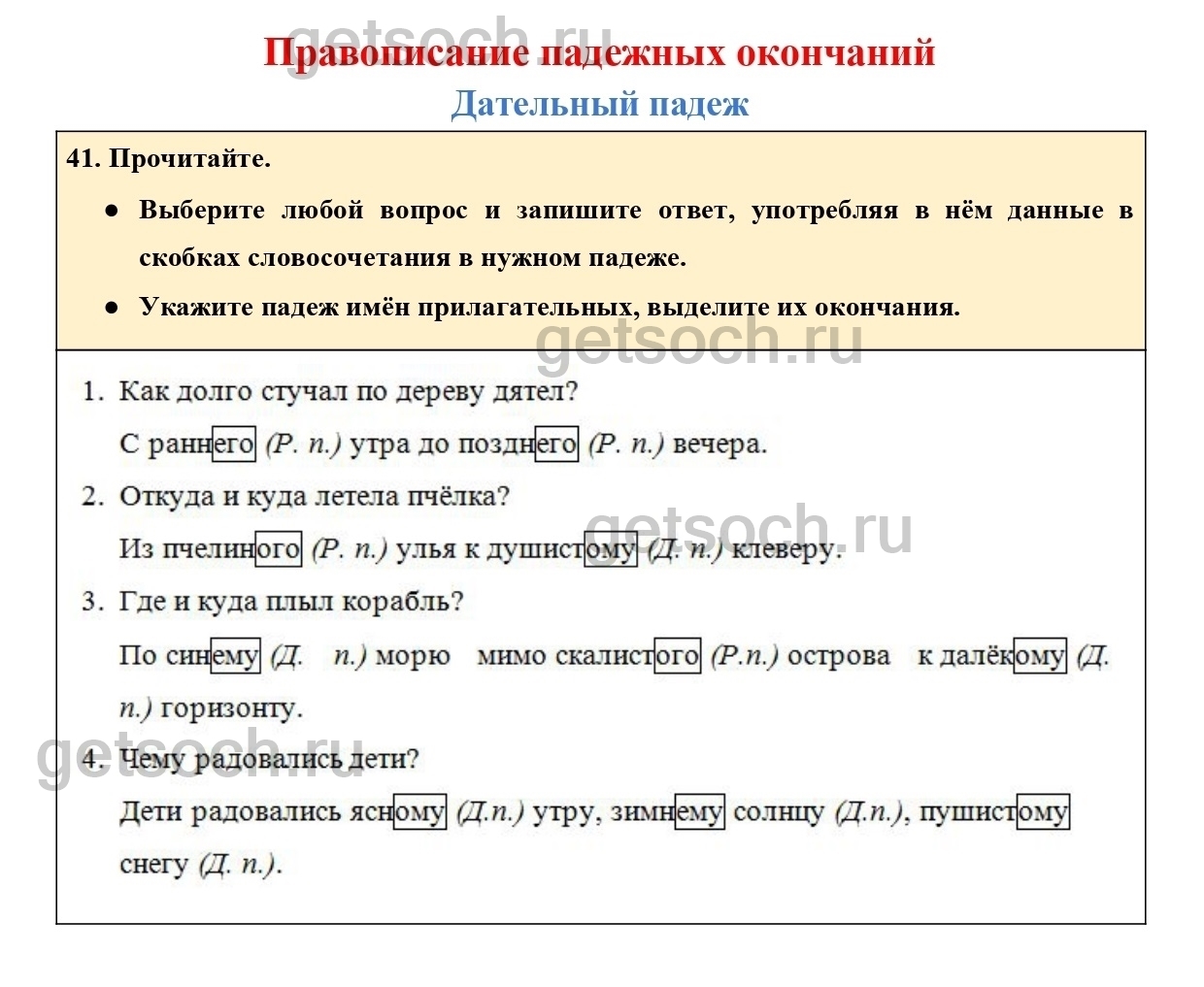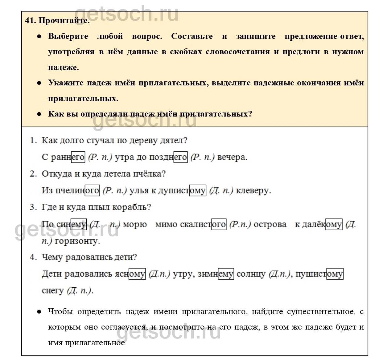 Рассмотрим ответы на Упражнение 41 из учебника по русскому языку для 4 класса Канакиной