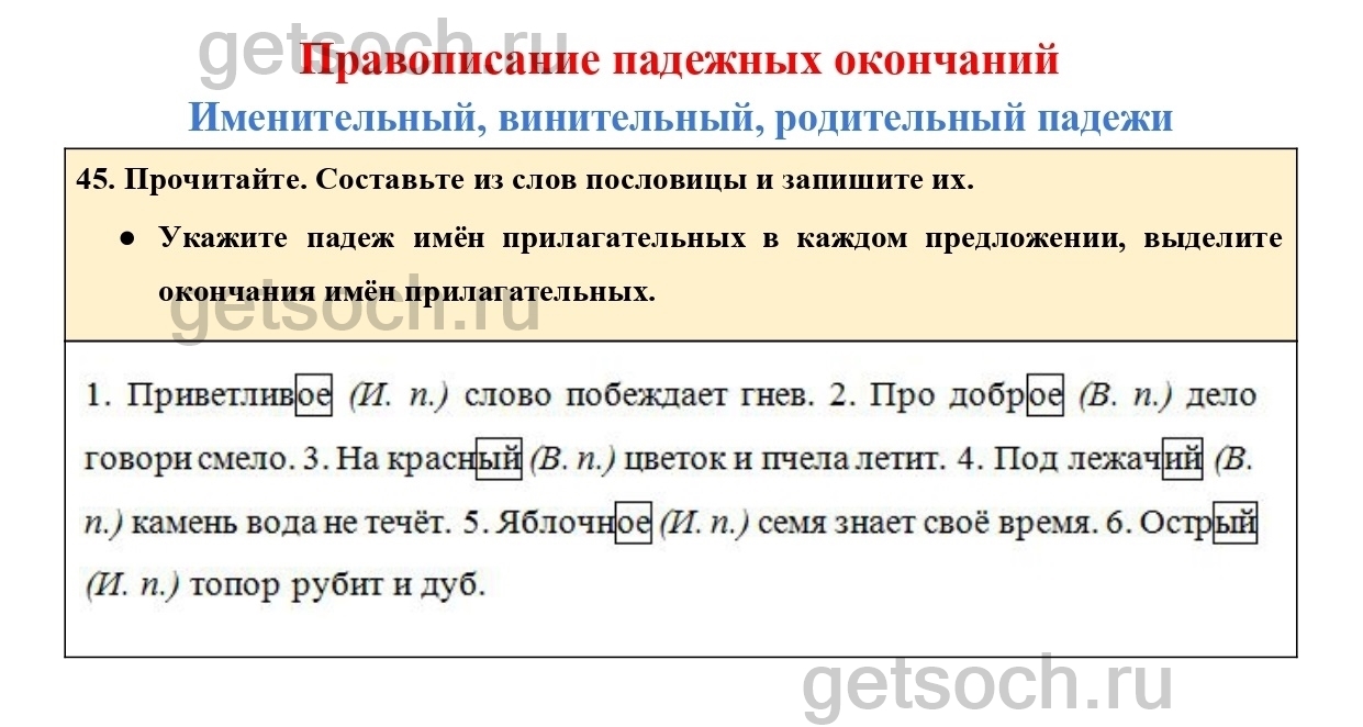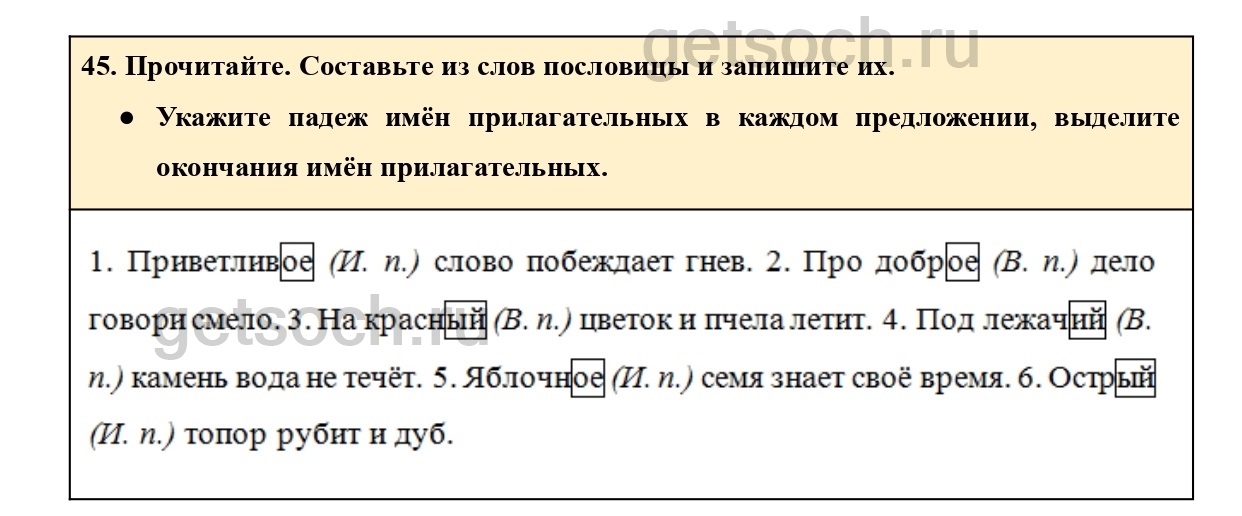 Рассмотрим ответы на Упражнение 45 из учебника по русскому языку для 4 класса Канакиной