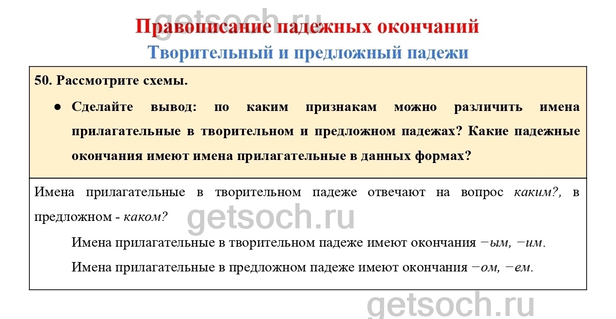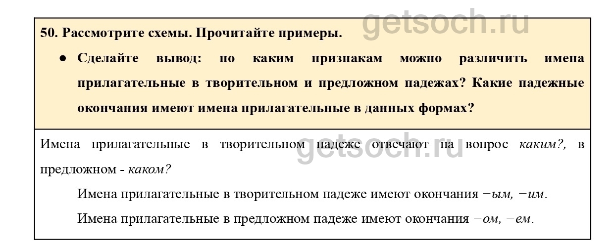 Рассмотрим ответы на Упражнение 50 из учебника по русскому языку для 4 класса Канакиной