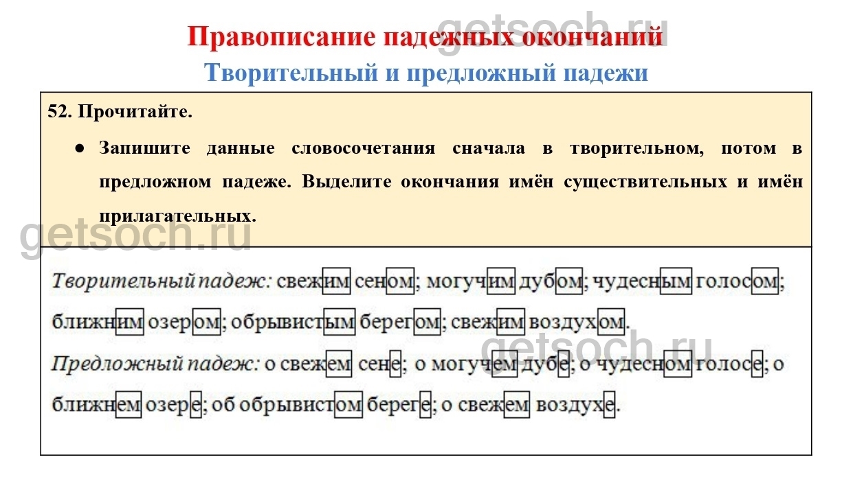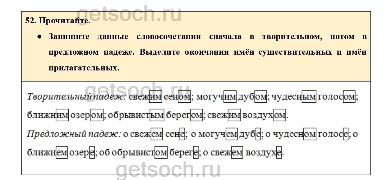 Рассмотрим ответы на Упражнение 52 из учебника по русскому языку для 4 класса Канакиной