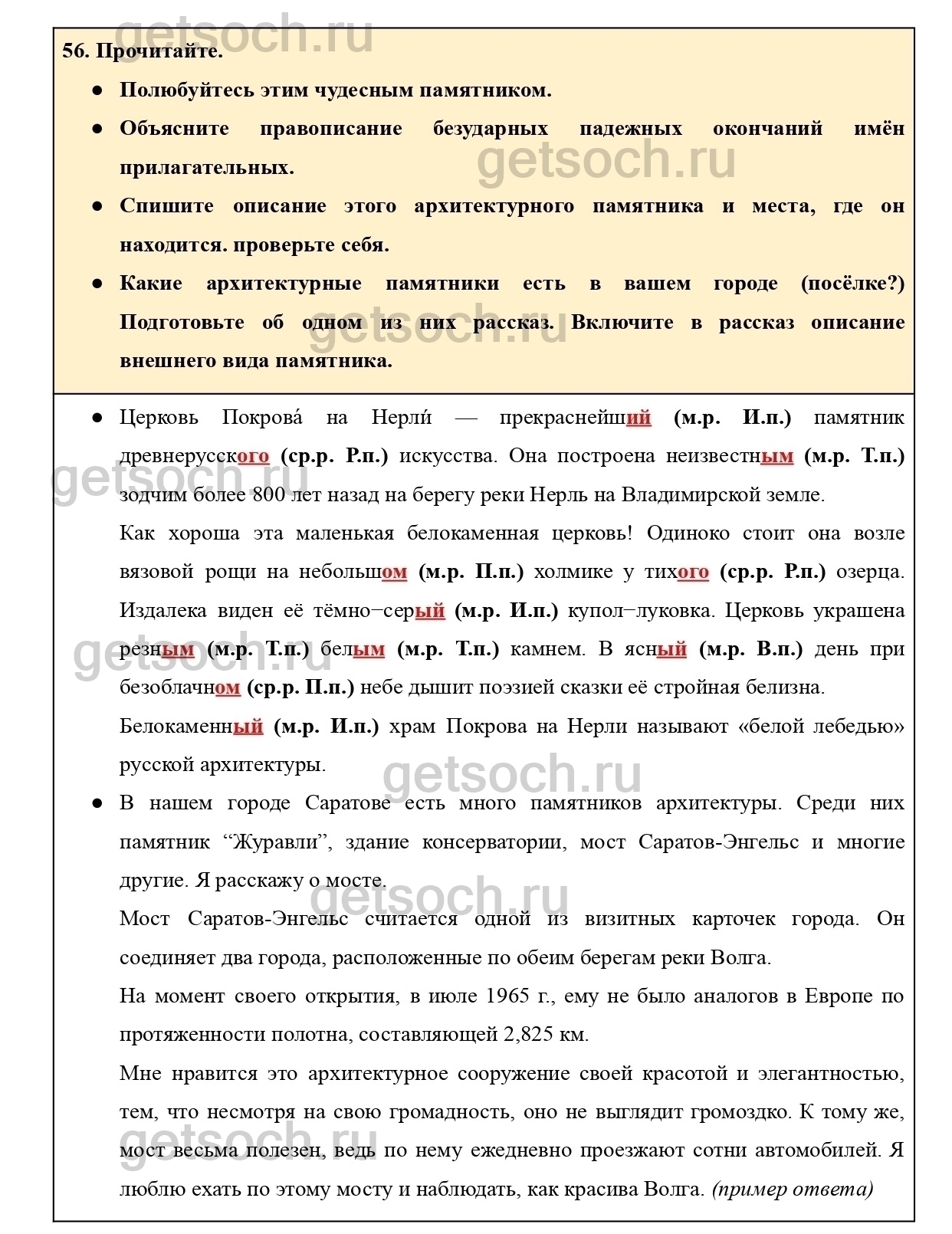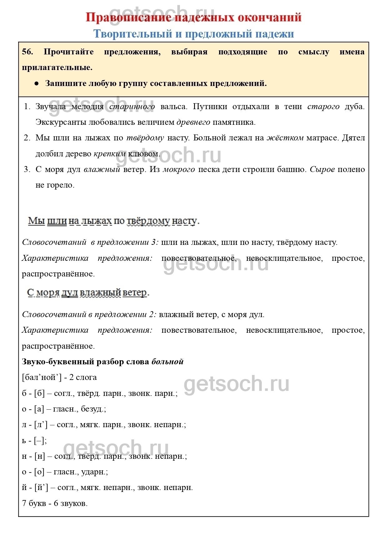 Рассмотрим ответы на Упражнение 56 из учебника по русскому языку для 4 класса Канакиной