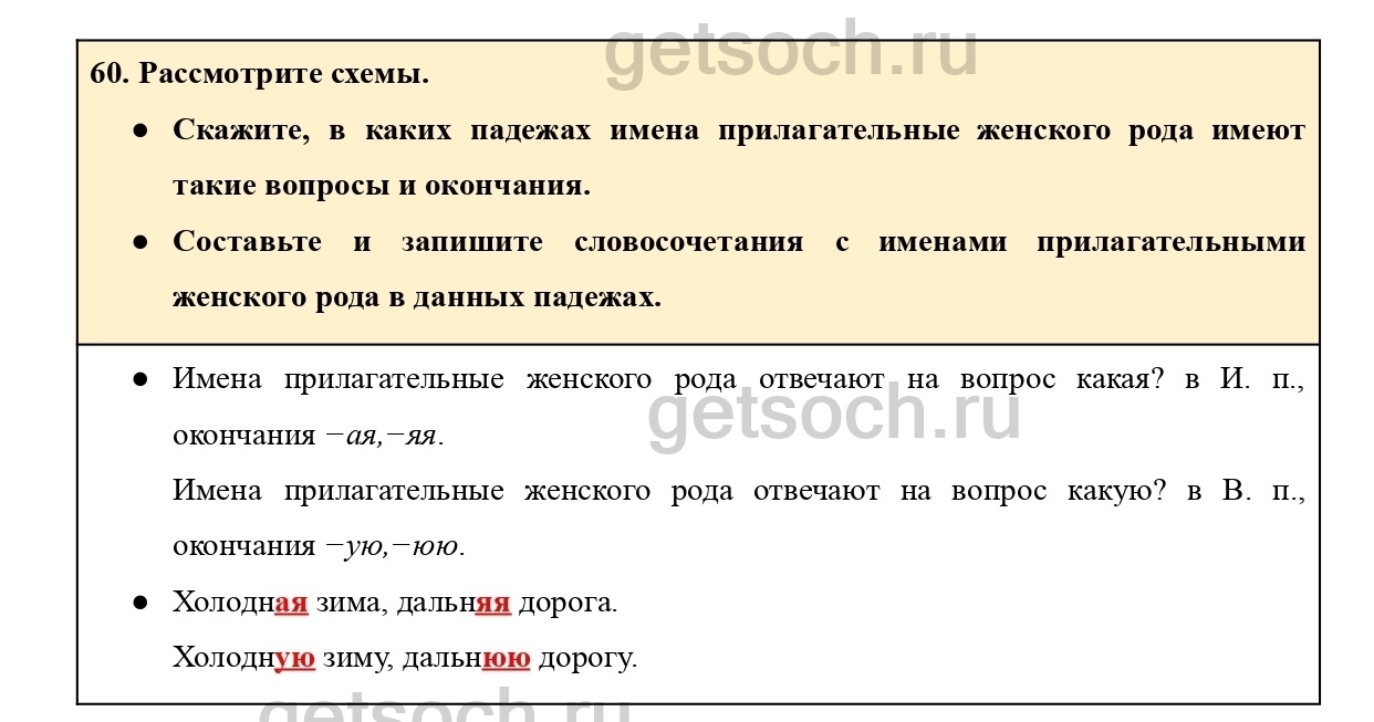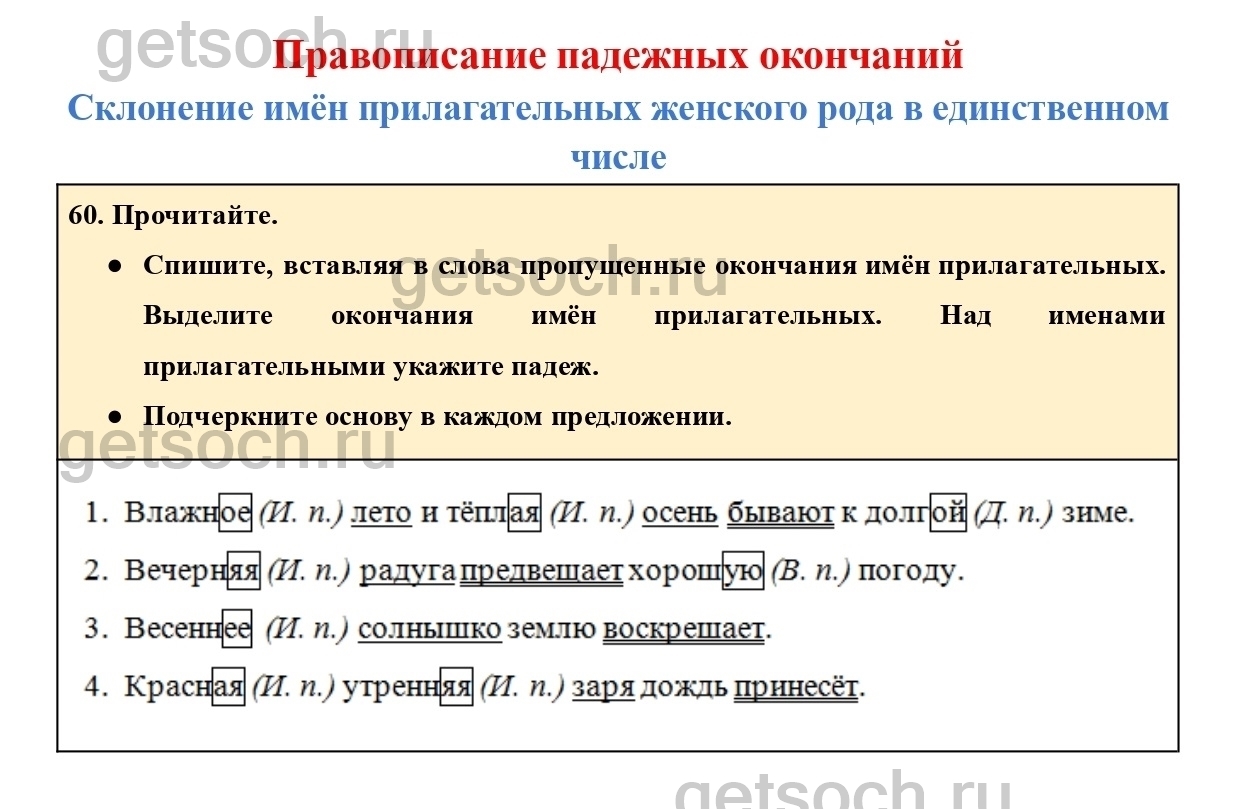 Рассмотрим ответы на Упражнение 60 из учебника по русскому языку для 4 класса Канакиной