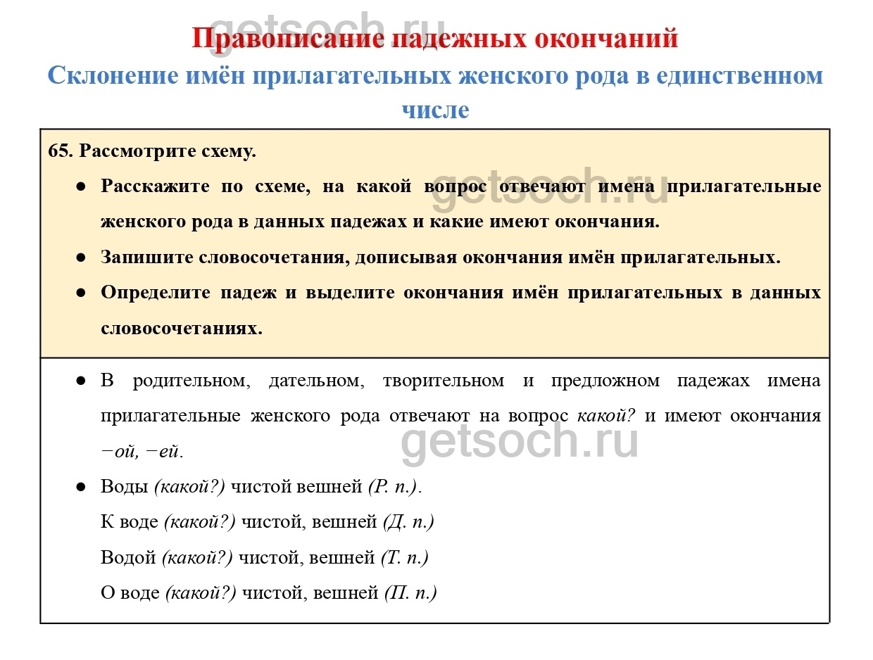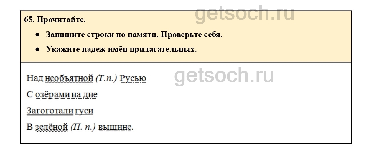 Рассмотрим ответы на Упражнение 65 из учебника по русскому языку для 4 класса Канакиной