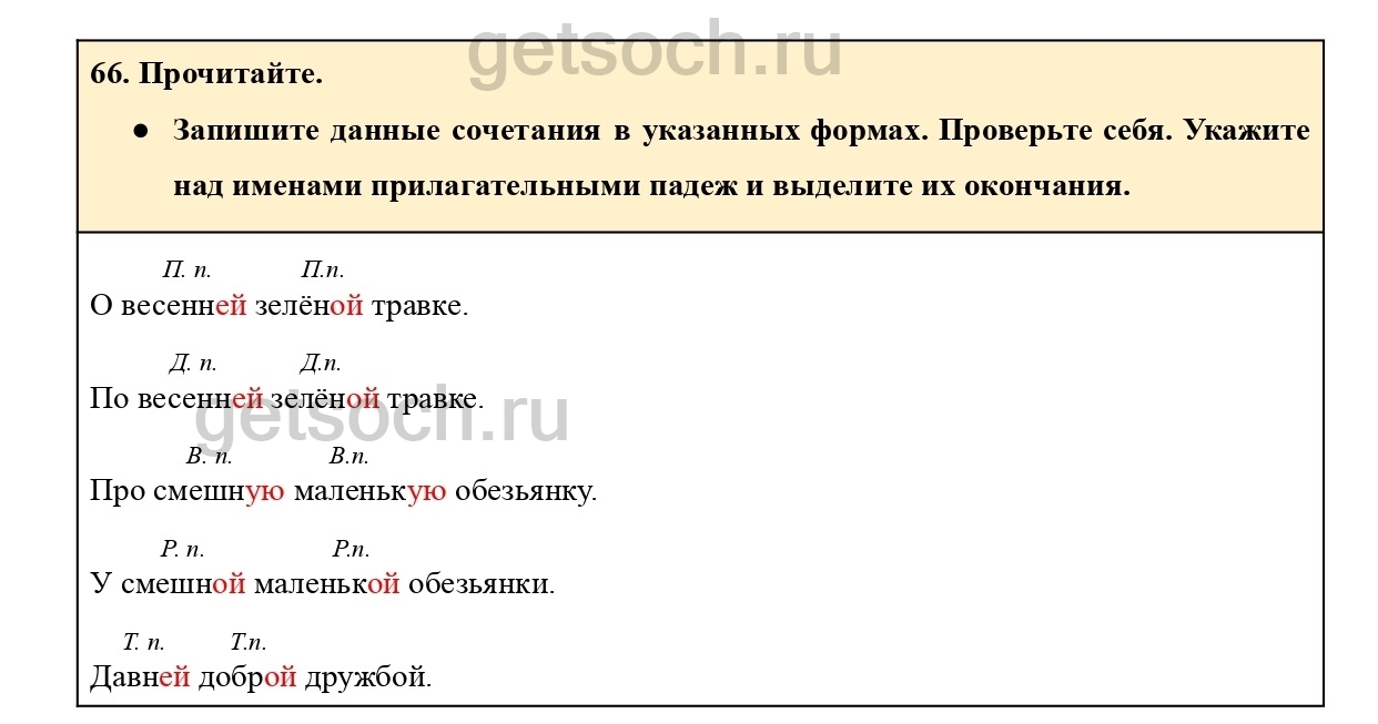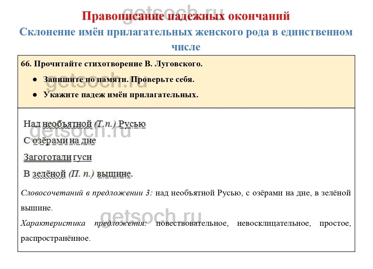 Рассмотрим ответы на Упражнение 66 из учебника по русскому языку для 4 класса Канакиной