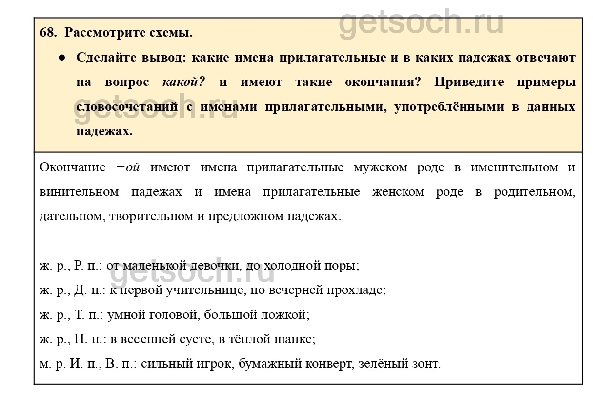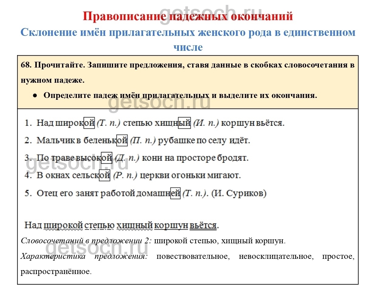 Рассмотрим ответы на Упражнение 68 из учебника по русскому языку для 4 класса Канакиной
