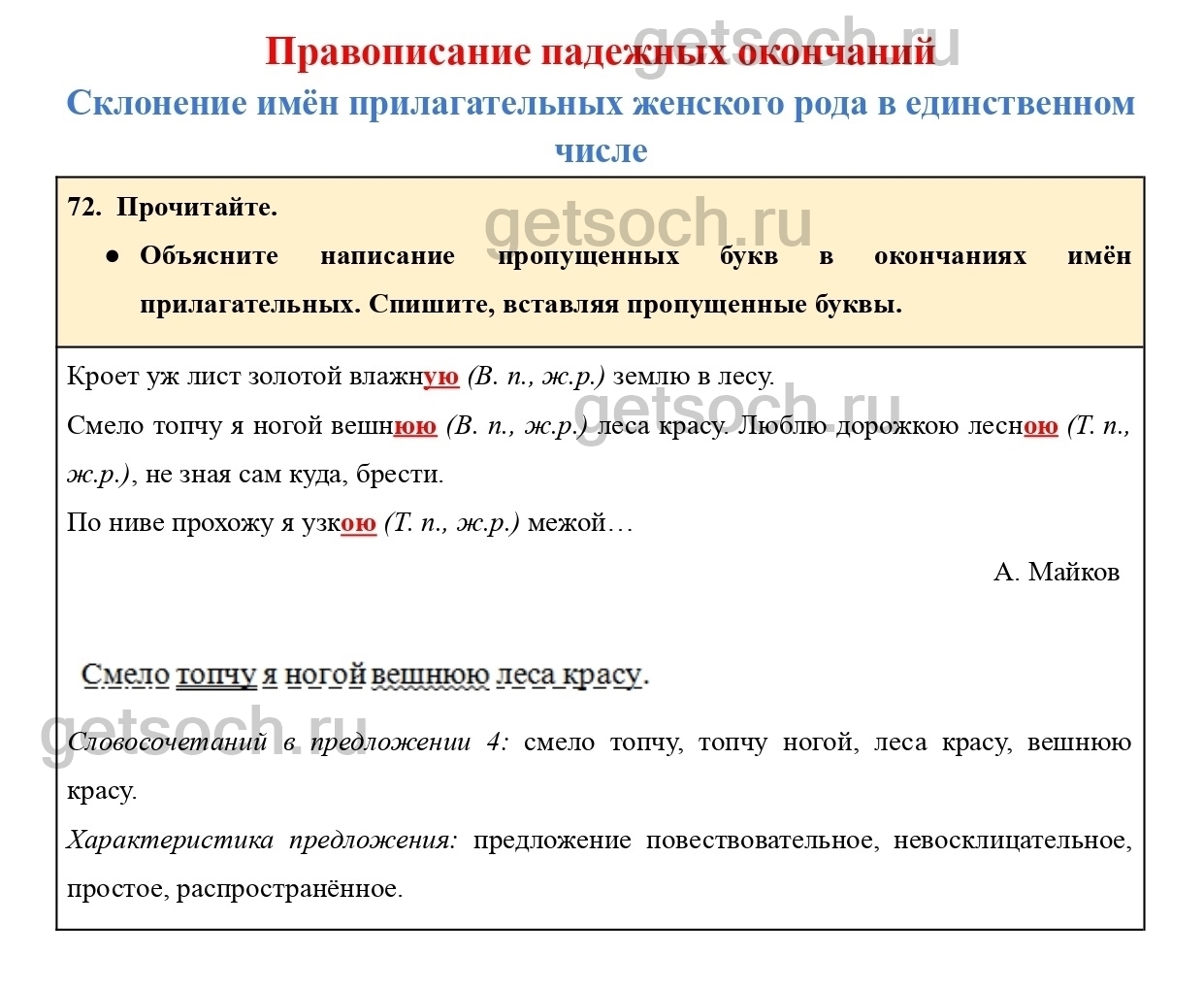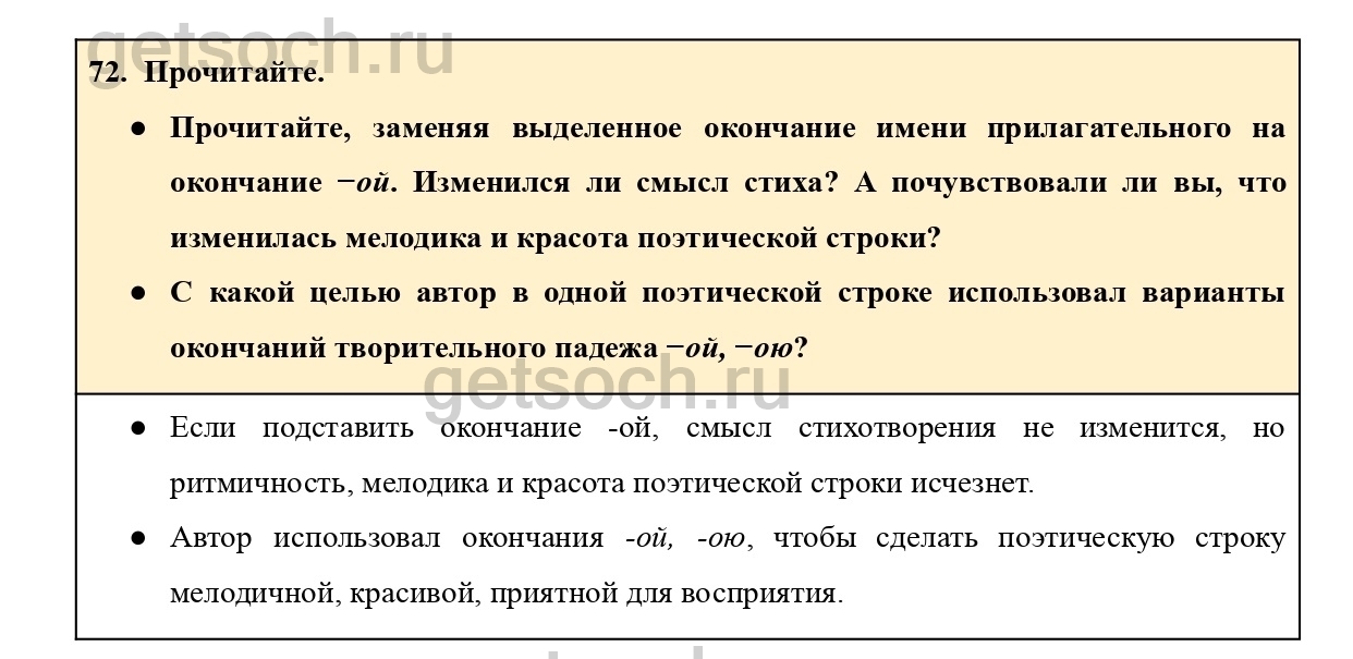 Рассмотрим ответы на Упражнение 72 из учебника по русскому языку для 4 класса Канакиной