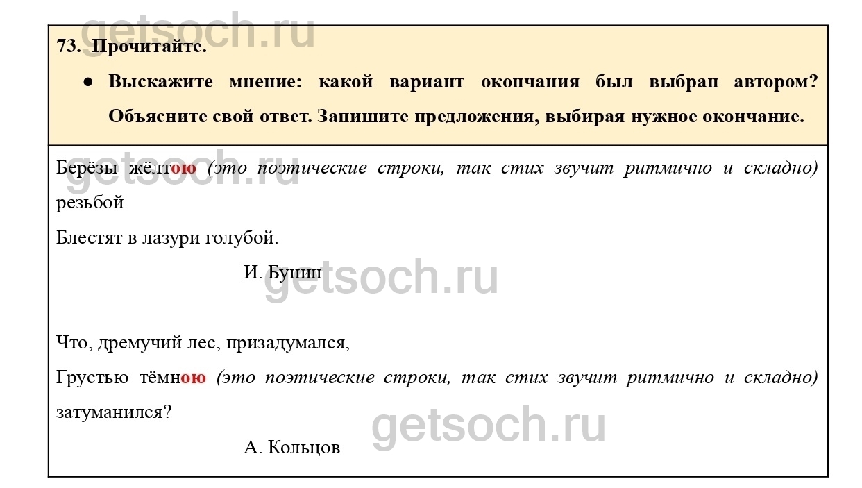 Рассмотрим ответы на Упражнение 73 из учебника по русскому языку для 4 класса Канакиной