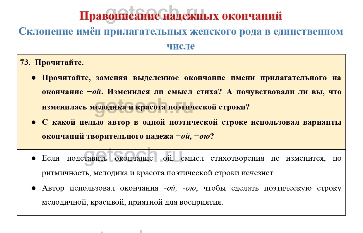 Прочитайте, заменяя выделенное окончание имени прилагательного на окончание −ой. Изменился ли смысл стиха? А почувствовали ли вы, что изменилась мелодика и красота поэтической строки?