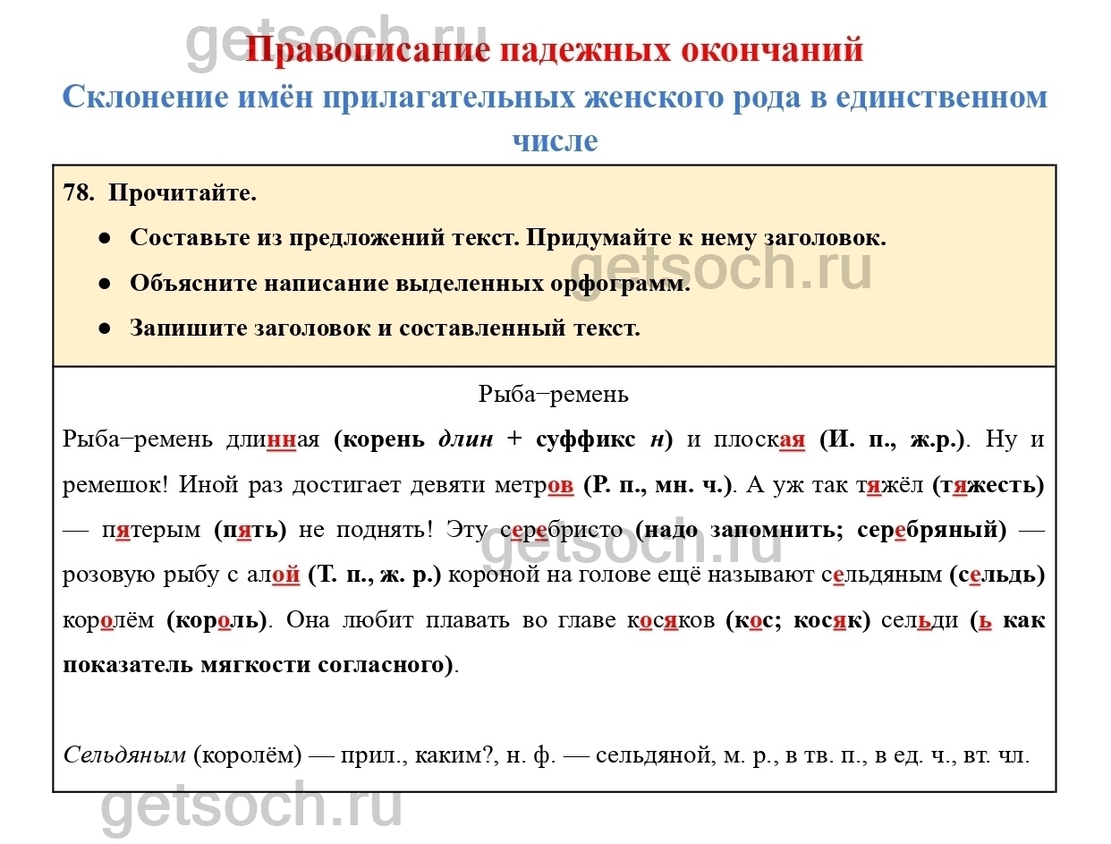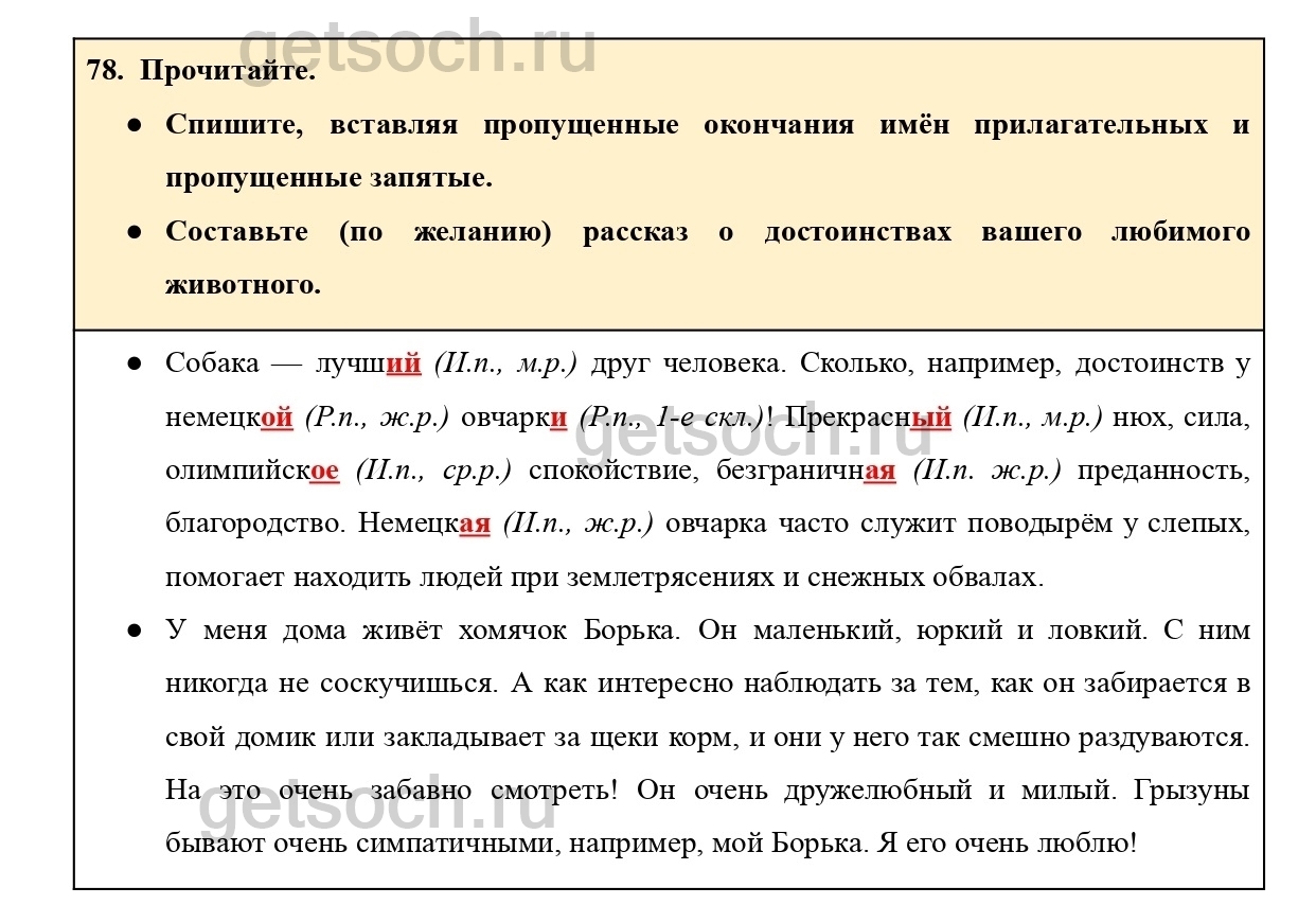Рассмотрим ответы на Упражнение 78 из учебника по русскому языку для 4 класса Канакиной