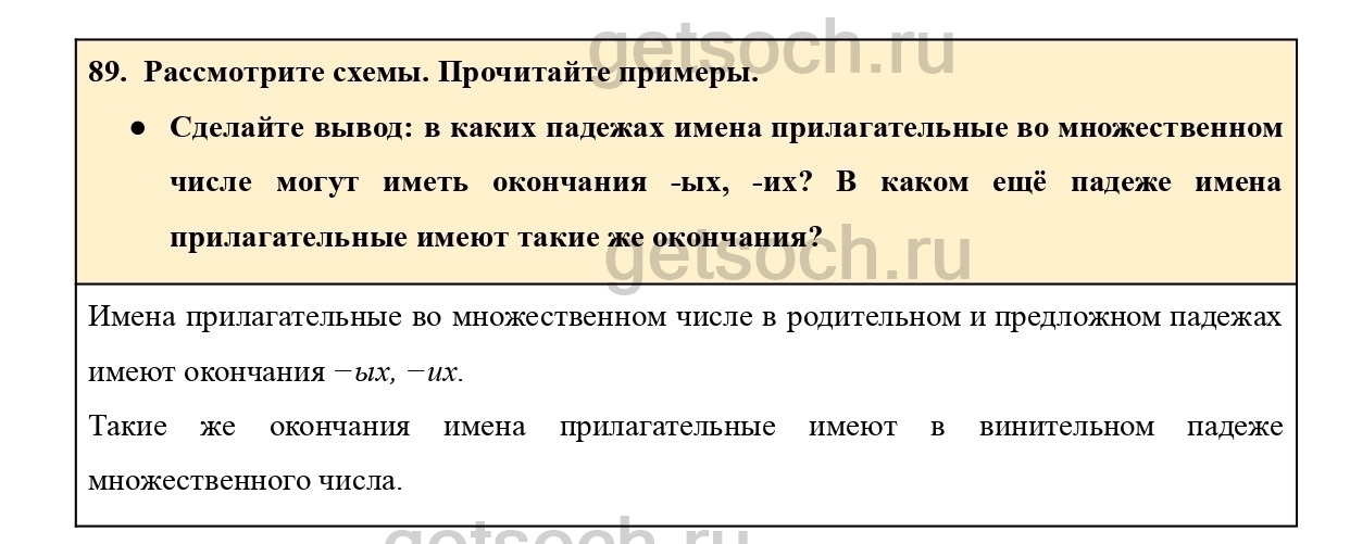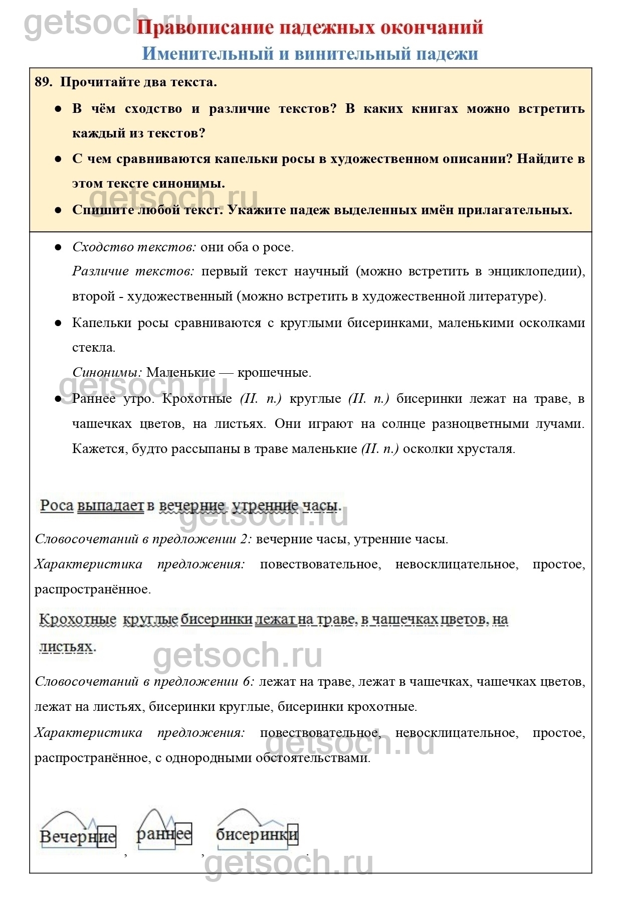 Рассмотрим ответы на Упражнение 89 из учебника по русскому языку для 4 класса Канакиной