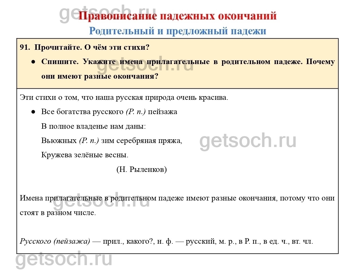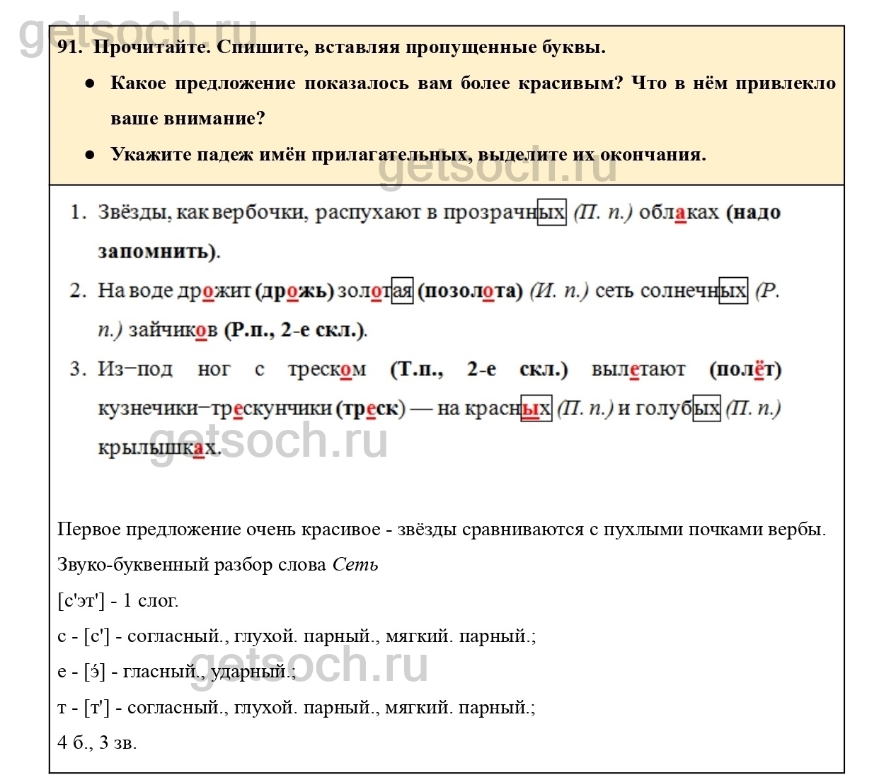 Рассмотрим ответы на Упражнение 91 из учебника по русскому языку для 4 класса Канакиной