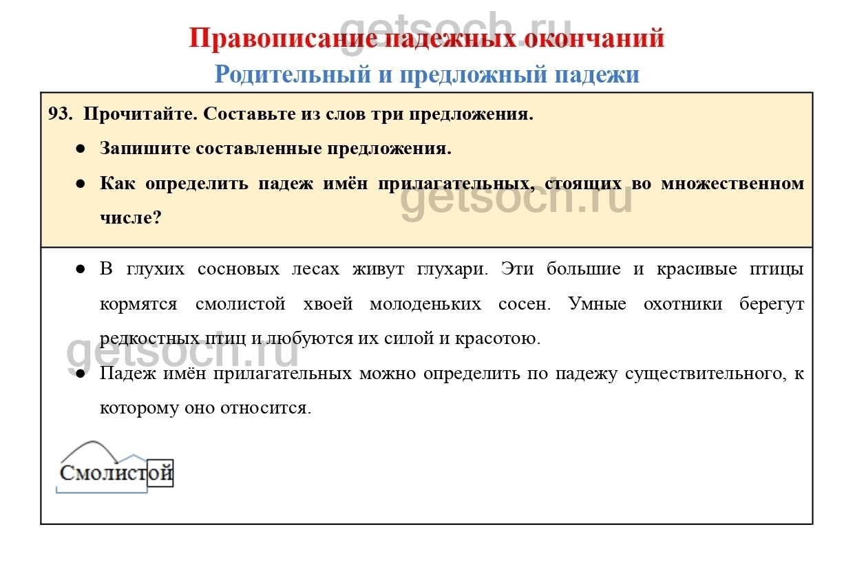 Рассмотрим ответы на Упражнение 93 из учебника по русскому языку для 4 класса Канакиной